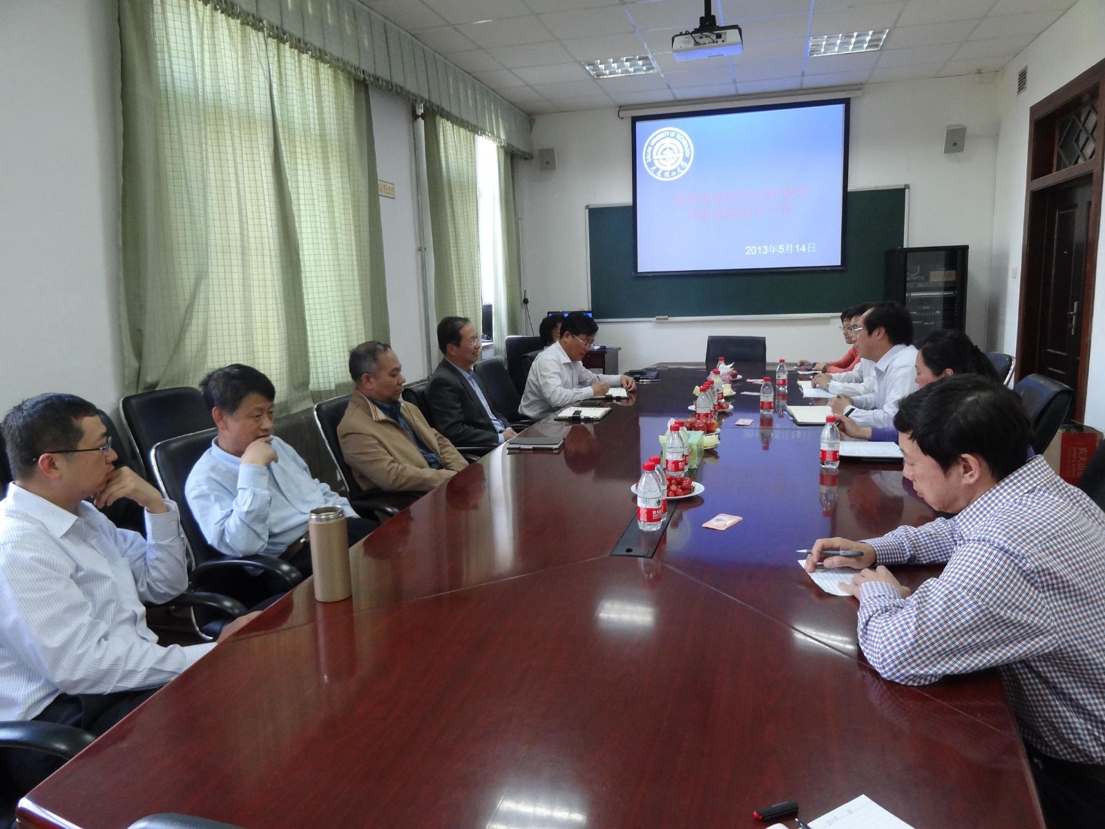 2013年5月14日,研究生院副院长马学虎携学科办秦涛教师和姚青教师来到宝威体育平台四楼会议室,同宝威体育平台党政负责人、主管研究生管理副院长及各一级学科点点长进行座谈。就之前的学科评估和学科建设问题展开交流。会议由物理与光电工程学院院长赵明山主持。