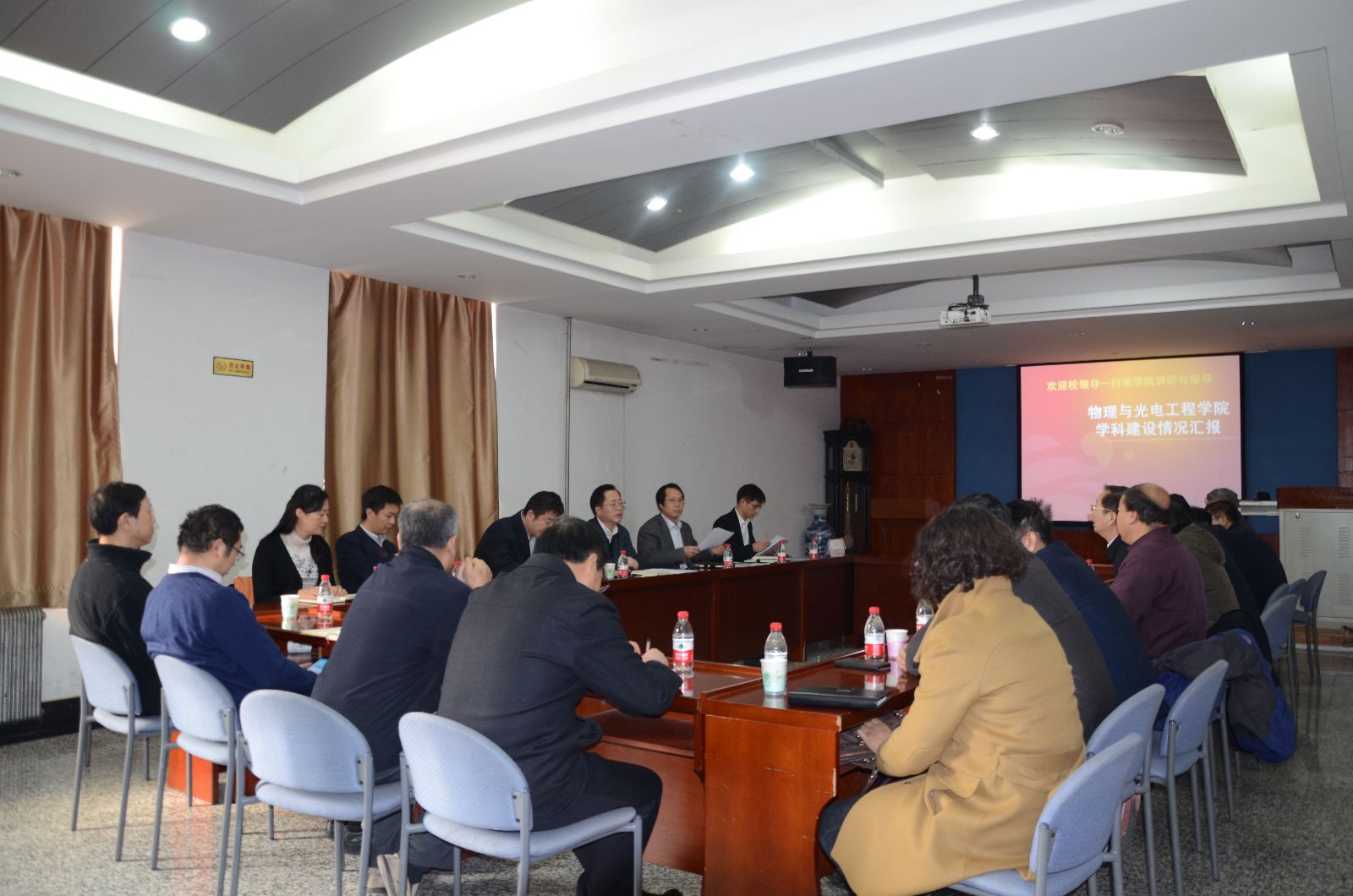 2015年1月13日,大连理工大学副校长曲景平在学科办全体同志的陪同下,来到宝威体育平台三楼会议室就争创一流大学学科建设工作进行调研。参加本次调研会议的有物理与光电工程学院党政班子主要成员、一级二级学科负责人、学术委员会主席、学位评定分委员会主席等以及数学科学学院相关领导及负责人。
