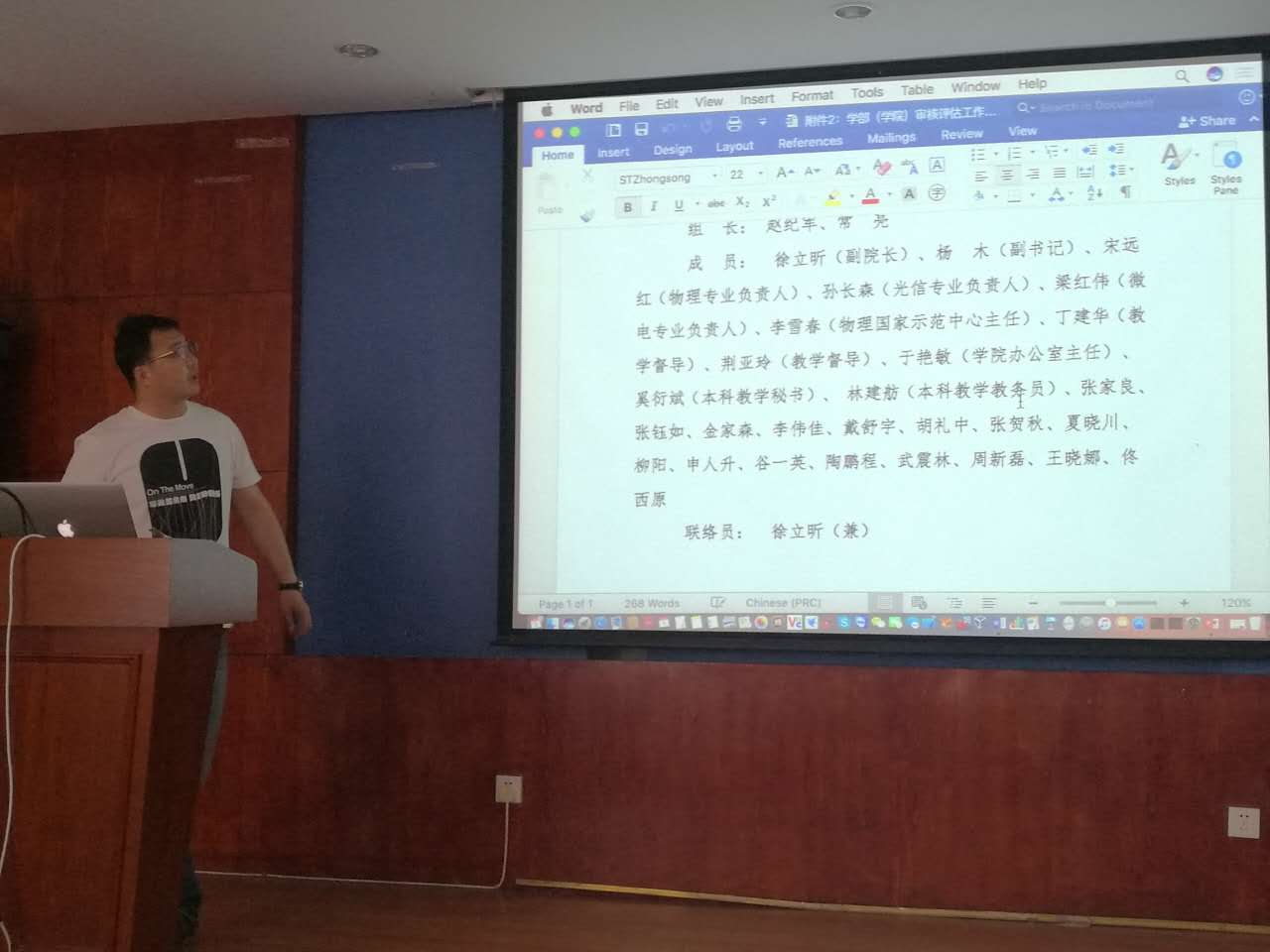 6月1日下午,宝威体育平台在系楼322学术报告厅自重召开本科教学审核评估工作推进会。学院本科教学审核评估工作组成员参加了会议,会议由学院教学副院长徐立昕同志主持。