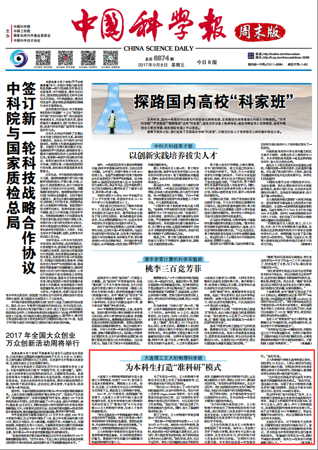 “这种动态机制是希望保证更多学生能享受到创新性的培养模式。”赵纪军说,通过淘汰机制,保留了真正对物理有兴趣且有学习能力的同学,因此这个班未来的建设目标,是实现100%的深造率。