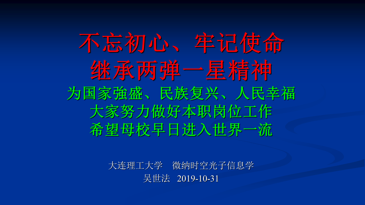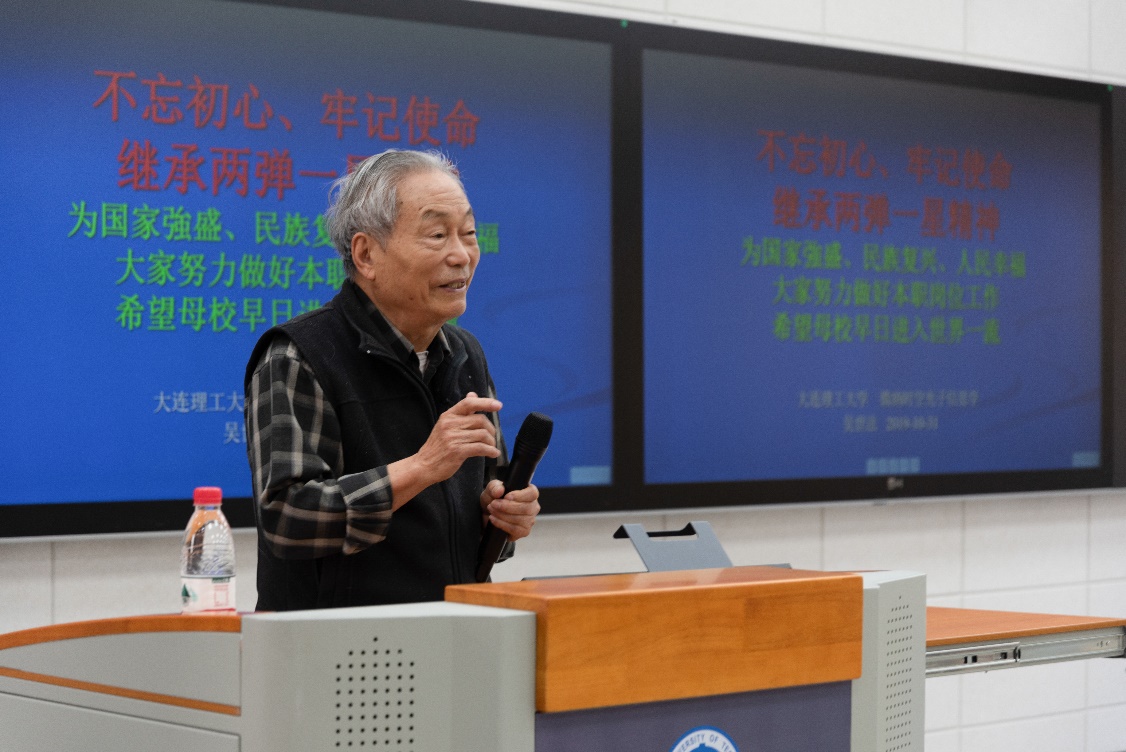 为进一步落实学校及学院“不忘初心、牢记使命”主题教育方案,丰富学习形式,积极开展革命传统教育、先进典型教育,突出“以身边榜样教育身边党员、以身边事感染身边人”,宝威体育平台邀请到我国第一颗原子弹研制工作主要参加者、学院退休教师吴世法教授,于10月31日下午在材料馆201党建智慧教室开展《继承“两弹一星”精神 不忘初心、牢记使命》集中党课活动。