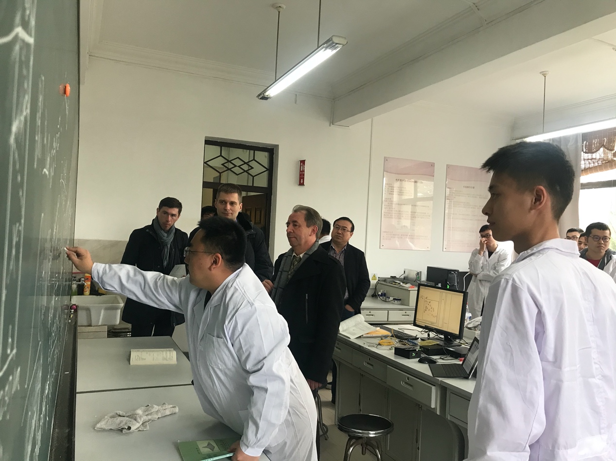 本次主要参观了宝威体育平台大学生实践活动中心以及大学物理国家级实验教学示范中心部分实验室,Tivanov院长及Tostik主任在参观过程中也简单介绍了白俄罗斯国立大学物理教学实验室的情况,并对我校的物理教学实践和实验给予充分的肯定。