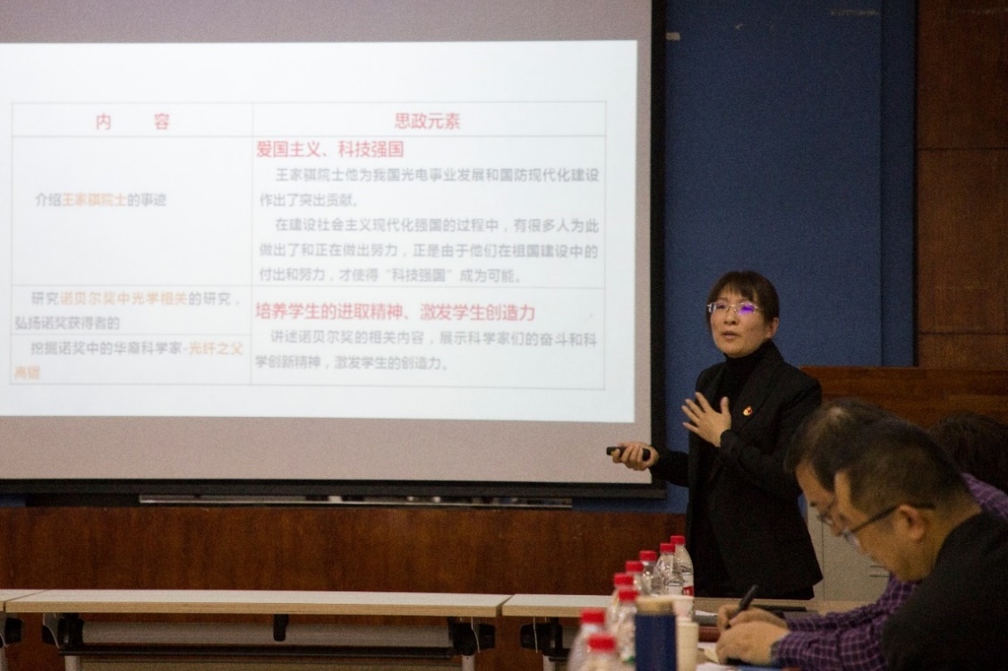 研讨会邀请到教育部高等学校物理学类专业教学指导委员会专家、东北师范大学宝威体育平台党委书记李金环做主旨报告《依托学科的光学课程群“课程思政”建设探索》。李金环阐述了个人对课程思政的认识,介绍了东北师范大学在课程思政建设方面的探索举措,展示了东北师范大学“手拉手团队”对普通物理课程中思政元素的梳理成果,并指出:课程育人是“三全育人”最重要的组成部分,课程思政建设将以评价方式创新为突破口,倒逼教学模式改革。