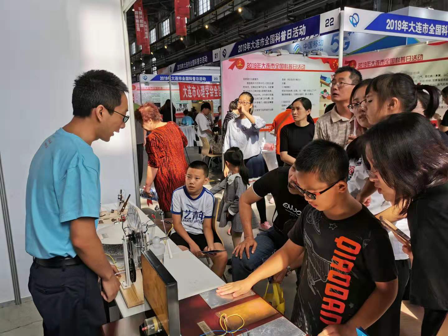 为了扩大科普受益面,2019年中心教师积极参加了由大连市全民科学素质工作领导小组主办,大连市科协承办的大连市全国科普日活动,在活动现场,张志宏副市长为大连市科技志愿服务总队授旗,市相关单位领导及全市科技爱好者和大连市中小学生积极参观展馆,表现出了浓厚的科学兴趣。同时,中心教师还主动走出去到大连市的中小学以及科技类比赛的现场进行科普,充分激发学生们的科学探索精神,培养学生的科学兴趣。