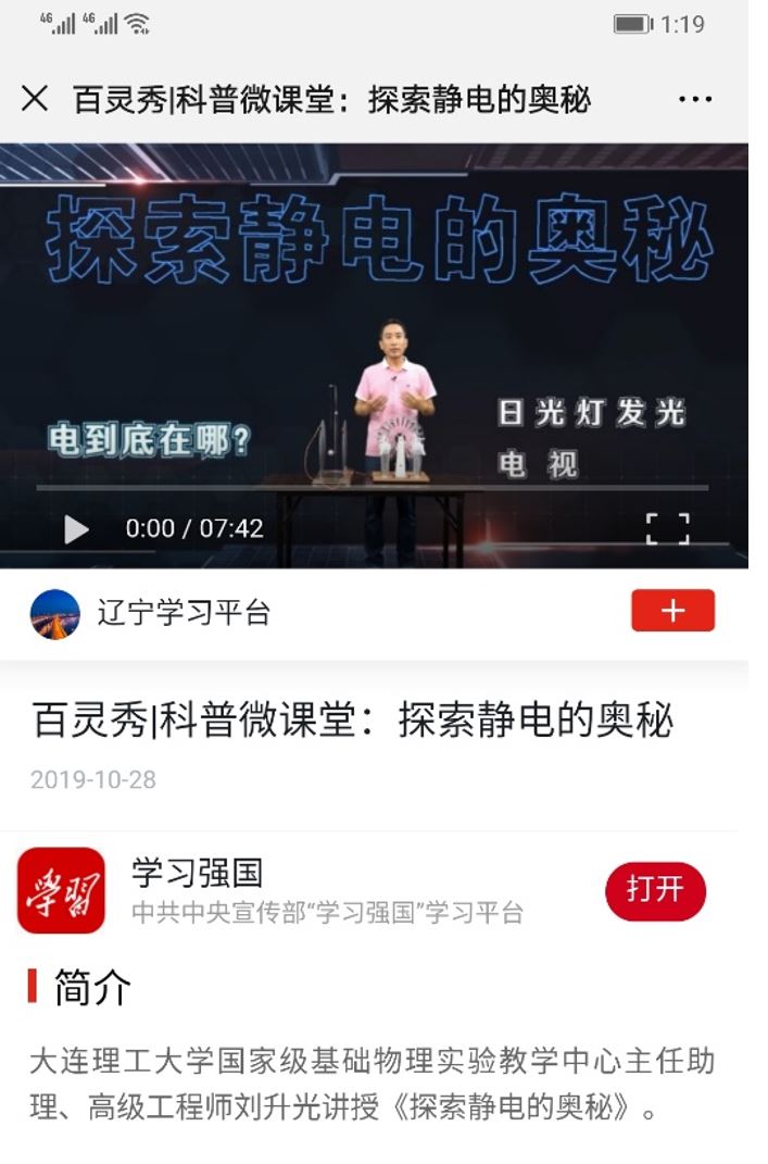 中心教师设计的科普类实验分别在2016年和2019年被湖南卫视《新闻大求真》栏目采纳,该节目在黄金时段播出,并被优酷、腾讯、搜狐和爱奇艺等多家视频网站收录,极大程度上扩大了科普的受众范围。同时,中心设计的静电实验还被中央宣传部“学习强国”采纳,使我们的科普工作进入了越来越多人的视野。
