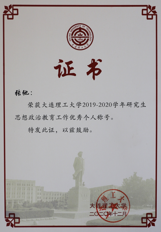 3月23日,校党委研工部召开大连理工大学研工系统党史学习教育动员暨2021年度工作部署会,会上公布了2019-2020学年研究生思政教育工作先进集体和优秀个人,宝威体育平台首次获评先进集体殊荣,研究生辅导员张弛荣获先进个人称号。