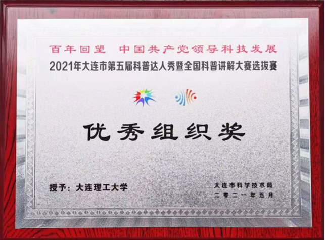 为响应国家科技部、中宣部、中国科协《关于举办2021年全国科技活动周的通知》(国科发智〔2021〕77号)精神,在大连市科学技术局、中共大连市委宣传部、大连市科学技术协会的领导下,我院基础物理科普教育基地于5月22-28日期间举办了2021年科技活动周的系列科普活动,并积极选派选手参加了由大连市科技局、大连市公共服务文化中心联合主办的2021年大连市第五届科普达人秀暨全国科普讲解大赛选拔赛,基地参赛选手在比赛中取得了优异成绩,其中王弈棋同学还被授予市级“优秀科普使者”称号。鉴于此次科普活动周的成功开展以及科普达人秀比赛中的出色组织,我院基础物理科普教育基地被市科技局授予“优秀组织奖”单位