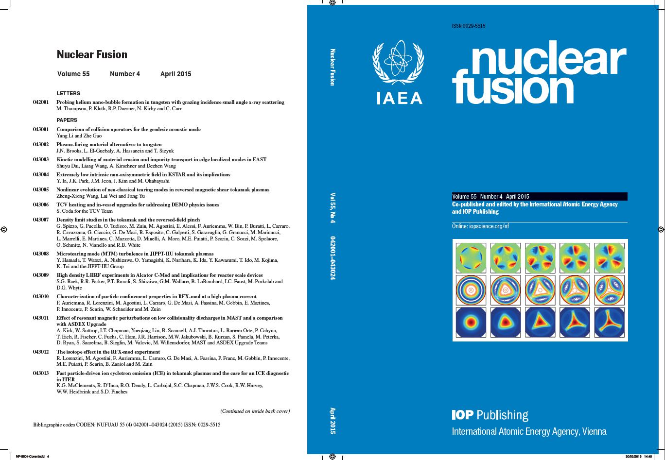 Nuclear Fusion由国际原子能机构(IAEA)主办,创刊于1960年。该刊是聚变领域的顶级刊物(Nuclear Fusion is the acknowledged world-leading journal specializing in fusion),重点刊登高温等离子体的加热和约束、磁约束核聚变的理论和实验探索、热核聚变反应堆技术及其概念设计等研究工作,在相关领域具有较大的影响力。