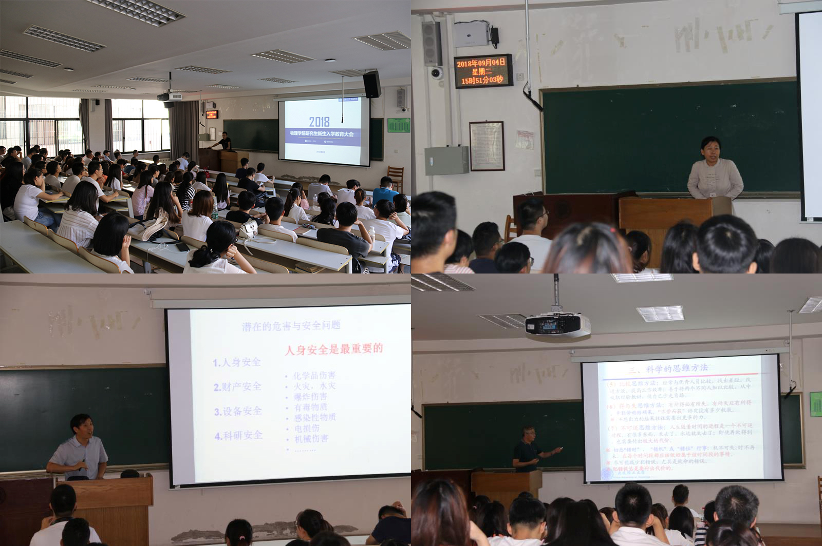 首先是王奇老师做报告,让同学们了解学院沿革与科研实力、研工组织架构、研究生的规章制度、奖惩措施等;然后吴爱丹老师介绍了关于研究生培养的事宜及问题;随后张家良老师做了关于实验室安全的报告,让同学们更加了解实验室安全、注重实验室安全;最后丛书林老师以“研究生的思维、学习和科研方法”为题做了精彩的报告,给同学们上了新学期非常重要的第一课。