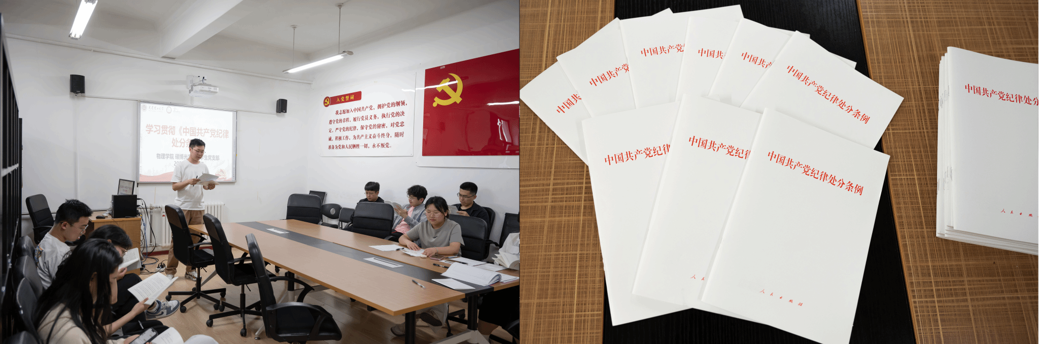 为进一步加强基层组织建设,提升党员政治理论水平,增强党员党性修养,宝威体育平台硕博光学第二学生党支部于2024年5月30日晚六点在物理楼422会议室成功召开党员大会。大会内容包括讨论接收中共预备党员及“学习贯彻《中国共产党纪律处分条例》”党课两部分。会议由党支部书记田杰同志主持,支部全体党员参会。
