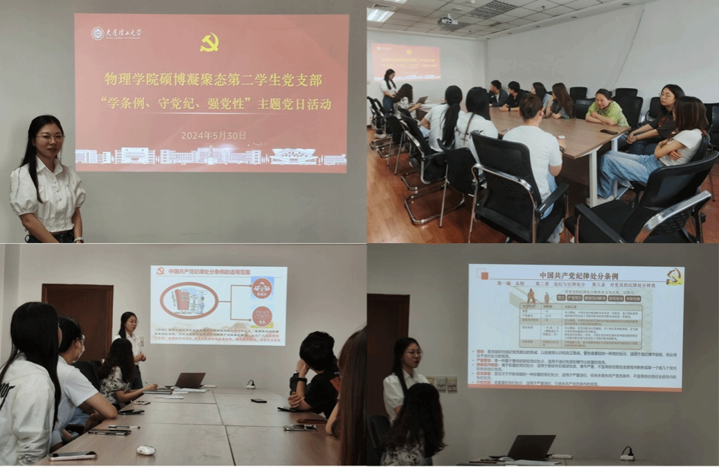 当前,全党正在深入开展党纪学习教育,为加强支部全体党员的党性修养和纪律意识,宝威体育平台硕博凝聚态第二学生党支部于2024年5月30日下午,在科技园C座510会议室召开党员大会暨“学条例、守党纪、强党性”主题党日活动,本次会议由支部书记杨秋萍同志主持,支部全体党员参会。