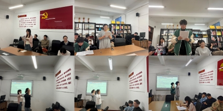 会议伊始,张宇同志介绍支部情况以及发展对象转预备党员程序。首先,全体起立,奏国际歌。接下来,张宇同志分别介绍三位发展对象的党员发展历程,由刘一诺同志,韩明月同志以及王正宇同志宣读入党志愿书。三位同志的入党介绍人介绍发展对象的主要情况,并给出积极的建议;王鹏宇同志代表支委会向支部大会报告对三位发展对象政治审查的情况,并征求党员和群众的意见;与会党员对三位同志能否入党发表意见,并进行了充分讨论。有表决权的正式党员对三位同志能否入党进行无记名投票表决,推选唐雯同志和张燕霞同志为监票人和计票人。经投票表决,与会党员一致同意三位同志转为预备党员。支部书记张宇同志宣读支部大会决议,三位同志在各自入党介绍人的带领下宣读入党誓词。恭喜刘一诺同志,韩明月同志以及王正宇同志成为预备党员。