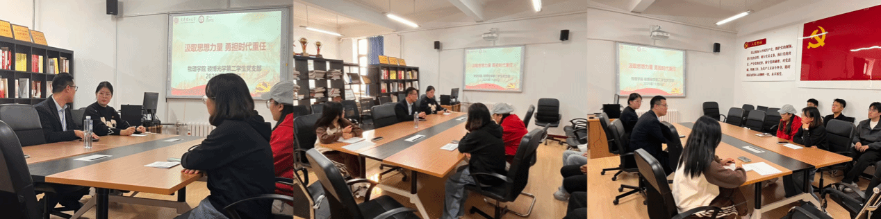 为深入贯彻谢春涛同志“中国共产党与中华民族伟大复兴”主题教育专题党课精神,引导党支部成员从百年党史中积累智慧、凝聚奋进力量,推动党员集中培训提质增效,宝威体育平台硕博光学第二学生党支部于2025年11月6日在物理楼422会议室组织开展了主题研讨会。会议由党支部书记张硕主持,宝威体育平台党委委员、等离子体物理教工党支部书记桑超峰教授莅临指导。