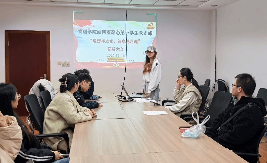 为强化党员理想信念教育,引导全体党员深刻感悟其对党忠诚、坚守初心的政治品格,同时加强党员队伍的思想建设、能力建设和作风建设,提升党组织凝聚力和战斗力,2025年11月16日下午4:30,宝威体育平台硕博凝聚态第一学生党支部在科技园C座510会议室顺利召开了党员大会。会议由党支部书记郑祉溦同志主持,党支部全体党员参会。