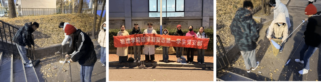 会议第四项,开展“学楷模,扫落叶;悟精神,净校园”主题党日活动。全体党员带着学习韩铁强同志先进事迹的思想感悟,以实际行动践行“扎根基层、务实担当”的楷模精神,为美化校园环境贡献党支部力量。参与人员迅速分成3 个小组,手持扫帚、铁铲、垃圾袋等工具,分工协作投入到落叶清扫工作中。深秋时节,校园内道路两侧、绿化带中堆积了大量落叶,不仅影响校园美观,雨天还容易造成积水。党员同志们冲锋在前,承担落叶堆积最严重的主干道、教学楼周边区域。活动尾声,全体人员集合交流感悟。同志们表示,劳动是最好的党课,韩铁强同志的务实担当不仅体现在重大任务中,更蕴含在日常小事里。作为党员,要把这种精神融入日常,从身边事做起,用实干回应群众期待。