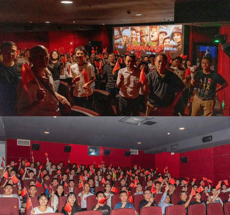 《我和我的祖国》是由陈凯歌、张一白、管虎、薛晓路、徐峥、宁浩、文牧野联合执导,黄渤、张译、吴京、马伊琍、杜江、葛优、刘昊然、陈飞宇、宋佳领衔主演,演绎7组普通人与祖国大事件息息相关的经历,以小人物见证大时代的新中国成立70周年献礼影片。学院党委在入场前为师生党员发放手持小国旗,烘托浓厚的国庆氛围。