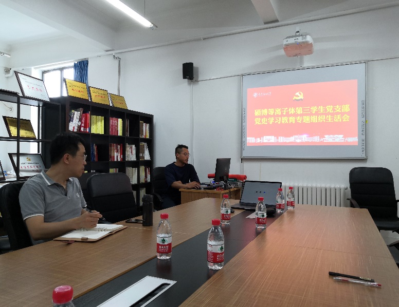 为深入学习贯彻落实习近平总书记在庆祝中国共产党成立100周年大会上的重要讲话精神,巩固党史学习教育在全体支部党员的学习效果。7月20日上午,宝威体育平台硕博等离子体第三学生党支部党史学习教育专题组织生活会顺利召开。