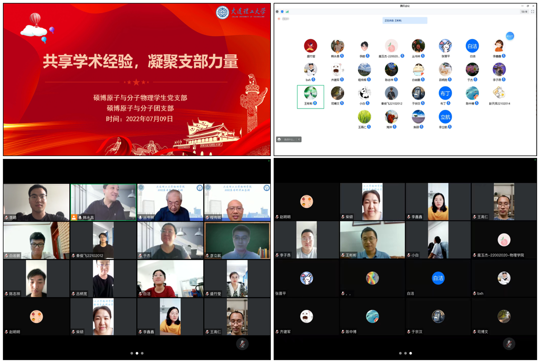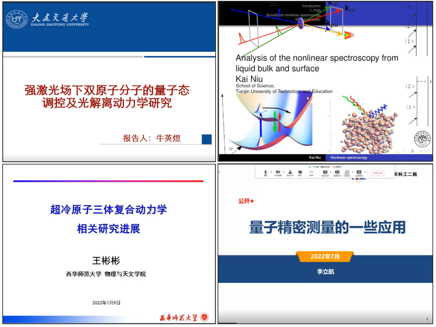 为鼓励理论研究和学术创新,开阔学生知识视野,给予大家更多相互交流的机会。受宝威体育平台副院长韩永昌教授邀请,6月25日大连交通大学牛英煜教授和天津职业技术师范大学牛凯副教授,7月9日西华师范大学王彬彬副研究员和航天二院二十三所李立航中级工程师,先后利用腾讯会议为原子与分子物理专业研究生做学术报告——《强激光场下双原子分子的量子态调控及光解离动力学研究》《Analysis of the nonlinear spectroscopy from liquid bulk and surface》《氦-3+氦-3+碱土金属三体复合产物分布规律理论研究》、《浅谈量子精密测量的一些应用》。讲座活动获得老师和同学们的积极响应,丛书林教授、于杰副教授、程传辉副教授、柴硕副教授、王硕副教授、王高仁副教授等教师及教研室全体研究生参加会议。讲座由韩永昌教授主持,共30人参加。