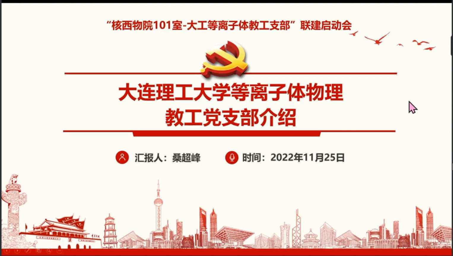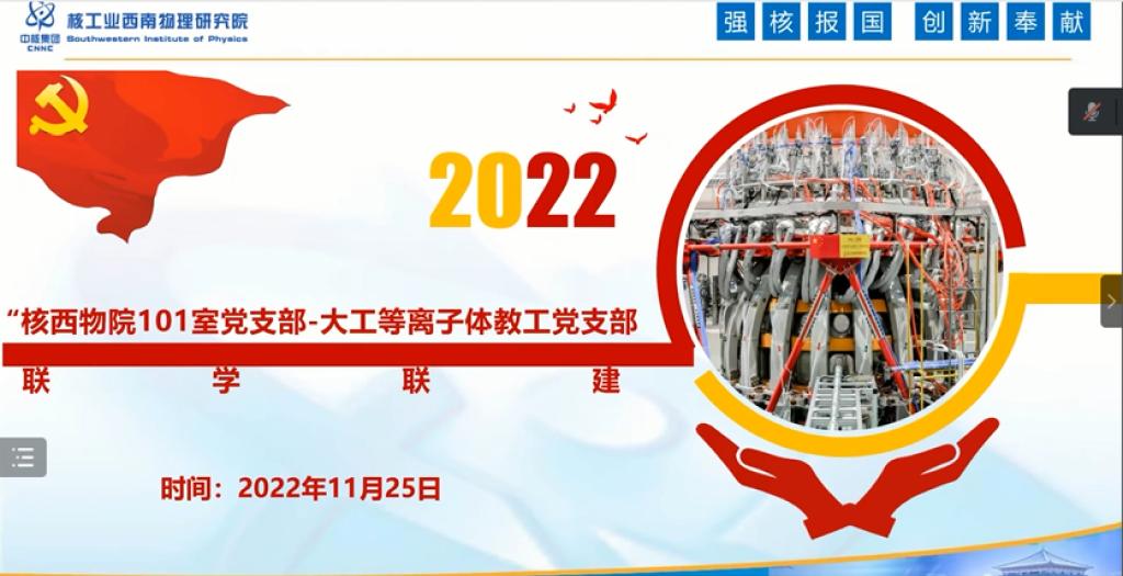 为学习宣传党的二十大精神,贯彻实施科教兴国战略、人才强国战略、创新驱动发展战略,推进学校“一融双高”和双一流建设加速跑,融合党建与学科建设,共促进同发展。11月25日中午宝威体育平台等离子体物理教工党支部与核工业西南物理研究院等离子体理论和模拟研究室党支部(以下简称101室党支部)联合召开共建启动会,会议通过线上线下结合方式进行,双方支部全体党员参加会议。
