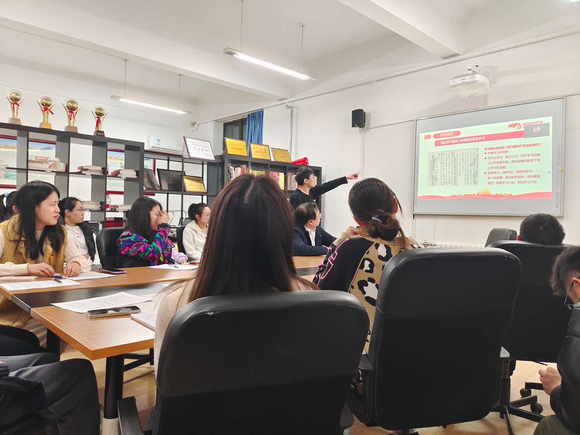 会议的第一项,由周楠楠同志与刘津伊同志带领全体党员进行主题党课学习。首先由周楠楠同志分享“深入学习二十大,青春践行二十大”主题党课。在党的二十大报告中,习近平总书记强调,当代中国青年生逢其时,施展才干的舞台无比广阔,实现梦想的前景无比光明。青春无边,奋斗以成。作为当代中国青年,生逢其时,要牢记习近平总书记的殷切寄语,珍惜当下时光,不负青春韶华,踔厉奋发、勇毅前行,让青春绽放更为绚丽的光芒。