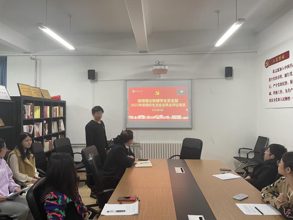 根据学校党委《关于召开2022年度基层党组织组织生活会和开展民主评议党员的通知》和学院党委的部署安排,支委会为更好开展组织生活会和民主评议党员相关工作进行精心准备,会前,支部围绕《学习党的二十大精神,正确理解中国式现代化》的主题党课教育,为开展好组织生活打下思想基础。硕博理论物理学生党支部2022年度组织生活会和民主评议党员于2023年3月2日晚7点在422会议室采取线上与线下相结合的方式进行开展。本次会议的主要内容有两部分,党课集中学习与组织生活会和民主评议党员。其中,集中学习围绕深入贯彻党的二十大精神和毛泽东同志“向雷锋同志学习”题词发表六十周年来开展。本次会议由支部书记刘玉强同志主持,宝威体育平台副院长于长水同志出席会议,支部全体党员参加。