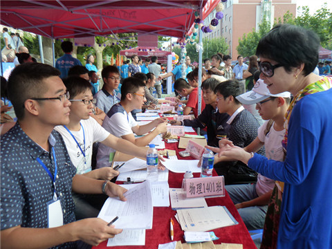 金秋甫至,丹桂飘香。夏日酷暑尚未散尽,福佳前广场热火朝天。经过一周的筹备与策划,物理与光电工程学院喜悦迎接2014级本科新生。通过8月30日、8月31日为时两天的辛苦与坚持,物理与光电工程学院2014年迎新工作进展顺利、收效良好。