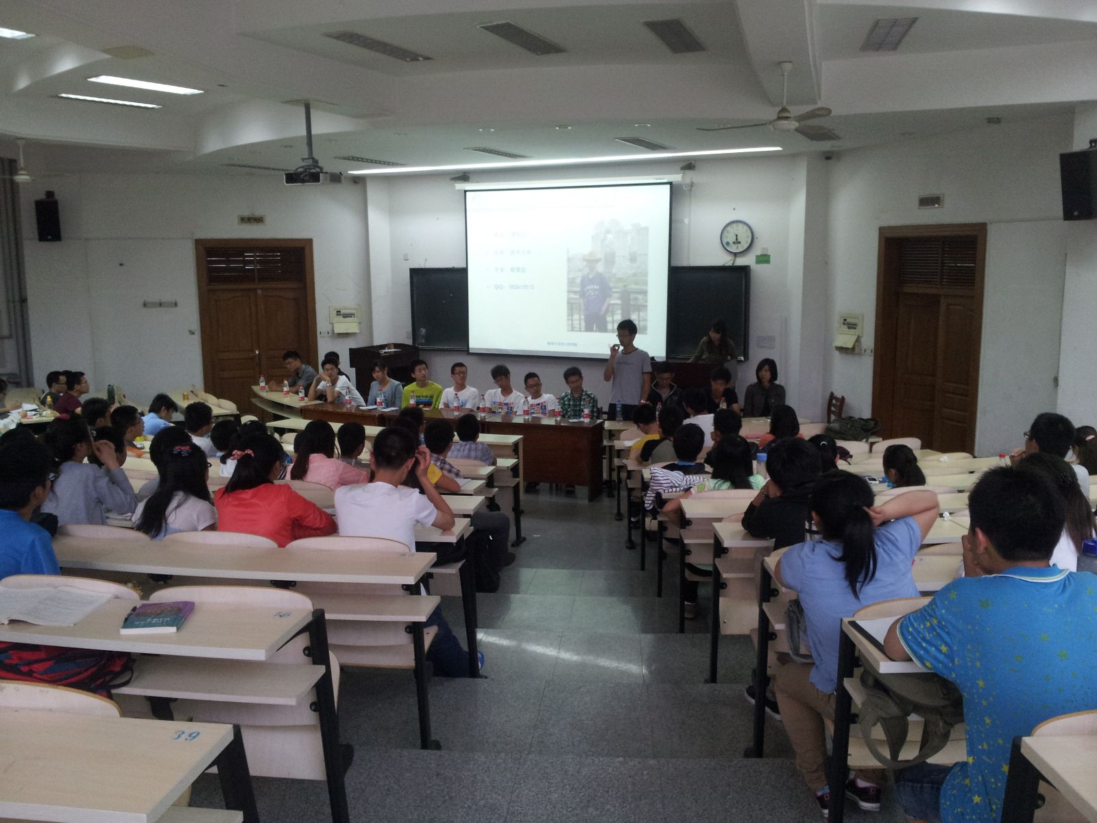 由于大家的问题接连不断,直到会议进行两个多小时以后才进入第三个环节,即自由讨论环节,有些同学抱着自己的疑问直接到台上跟学长学姐们进行面对面的交流!