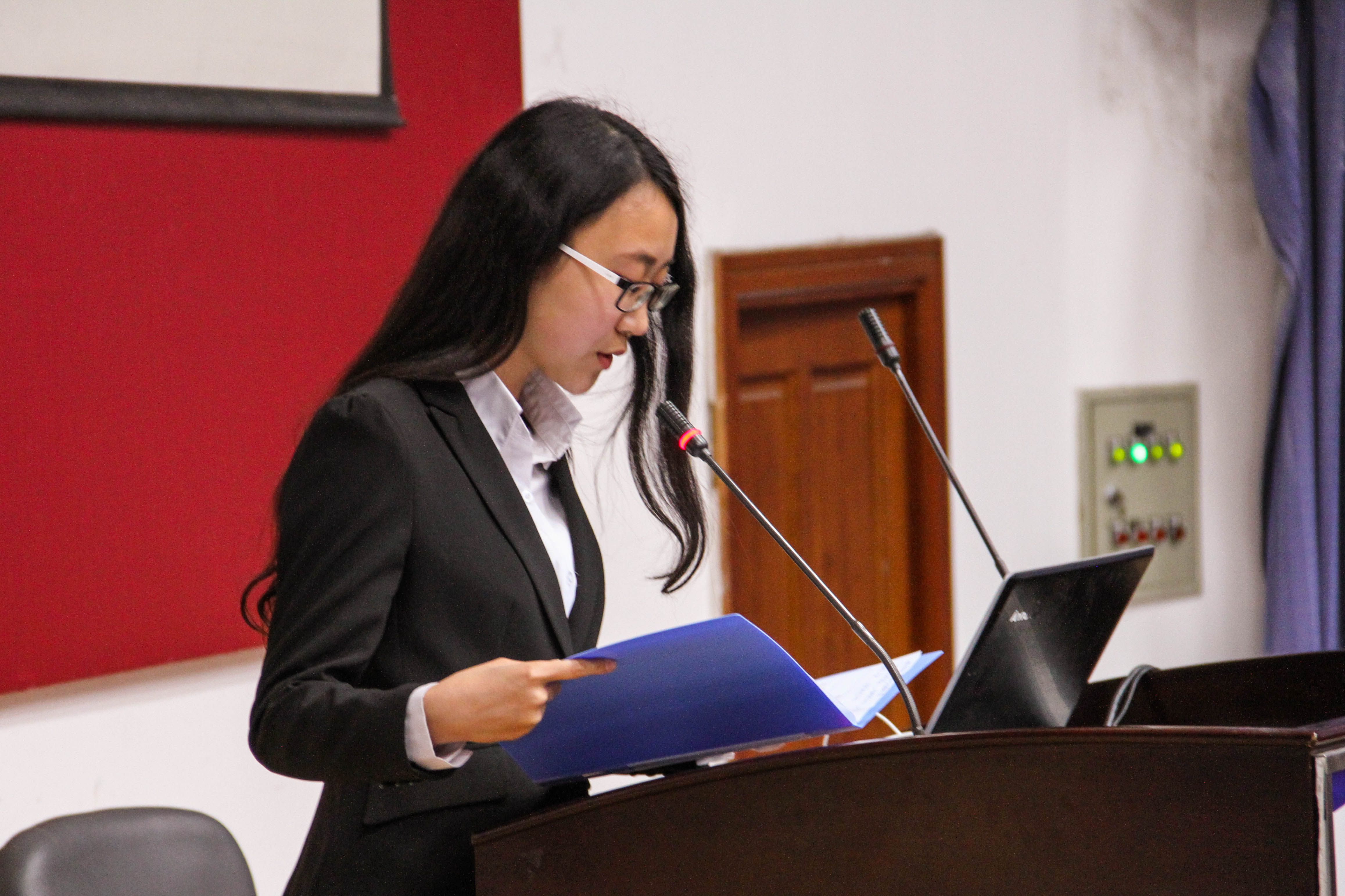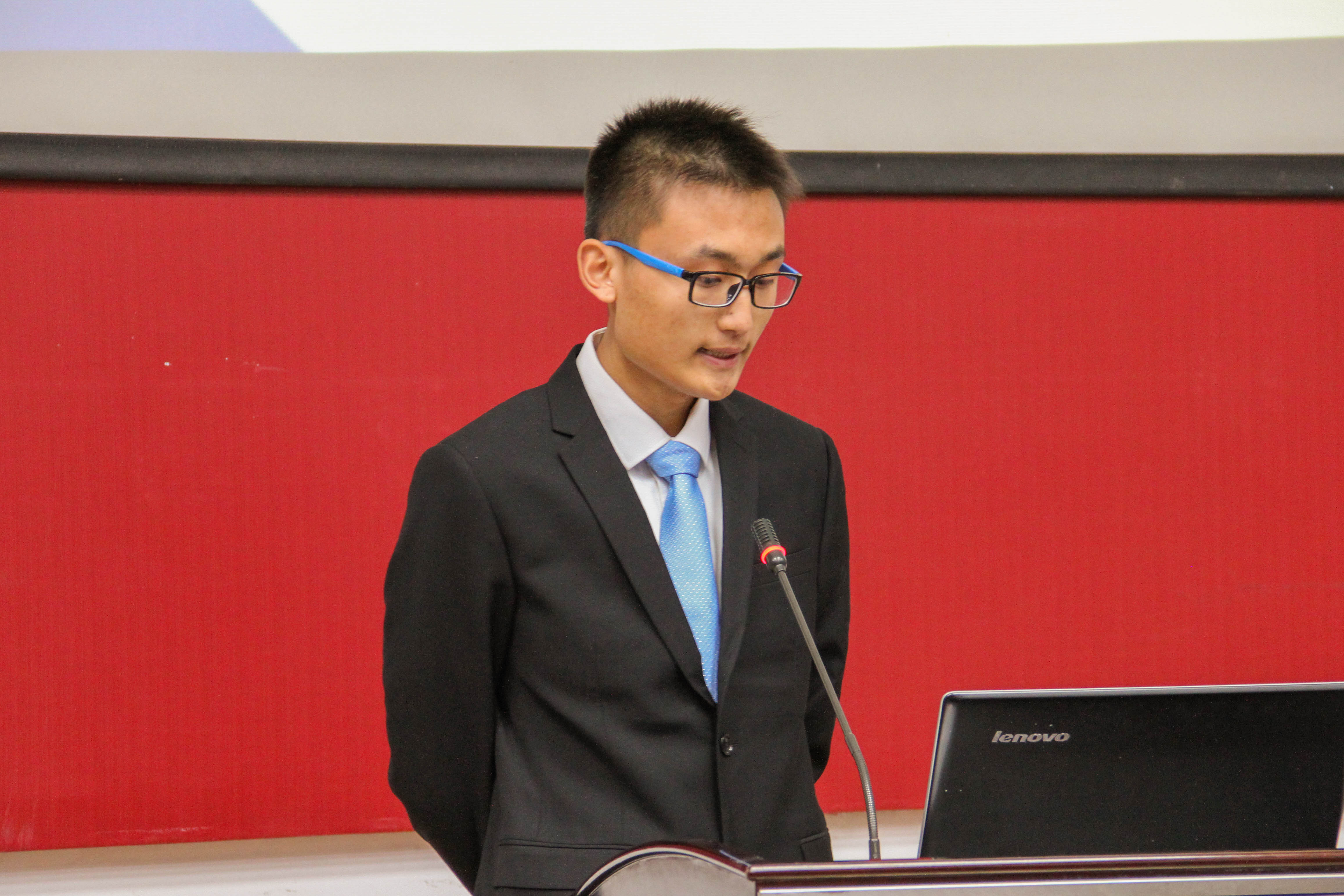 主持人宣布比赛开始,参赛的八位选手依次上台发言。首先上台的1号选手吕响结合自身的成长环境、性格分析以及目前的就业环境展示了自己对于职业生涯的规划,评委老师指出1号选手所向往的职业与其目前就读的专业存在差异,需要意识到这一问题并且做出抉择。2号选手李鑫展示了自己对负责人事管理工作的向往,评委老师提示2号选手在赛前的准备时并没有采访从事相关工作的人,使得整个规划不是那么的完备。3号选手许威紧接其后上台进行了精彩的展示。4号选手谢冰展示了自己想要成为一名职业游戏经理人的梦想道路,并展示了自己所做的努力以及所取得的成就,评委老师希望4号选手能再多展示一些自己努力的过程并对其送上美好的祝福。