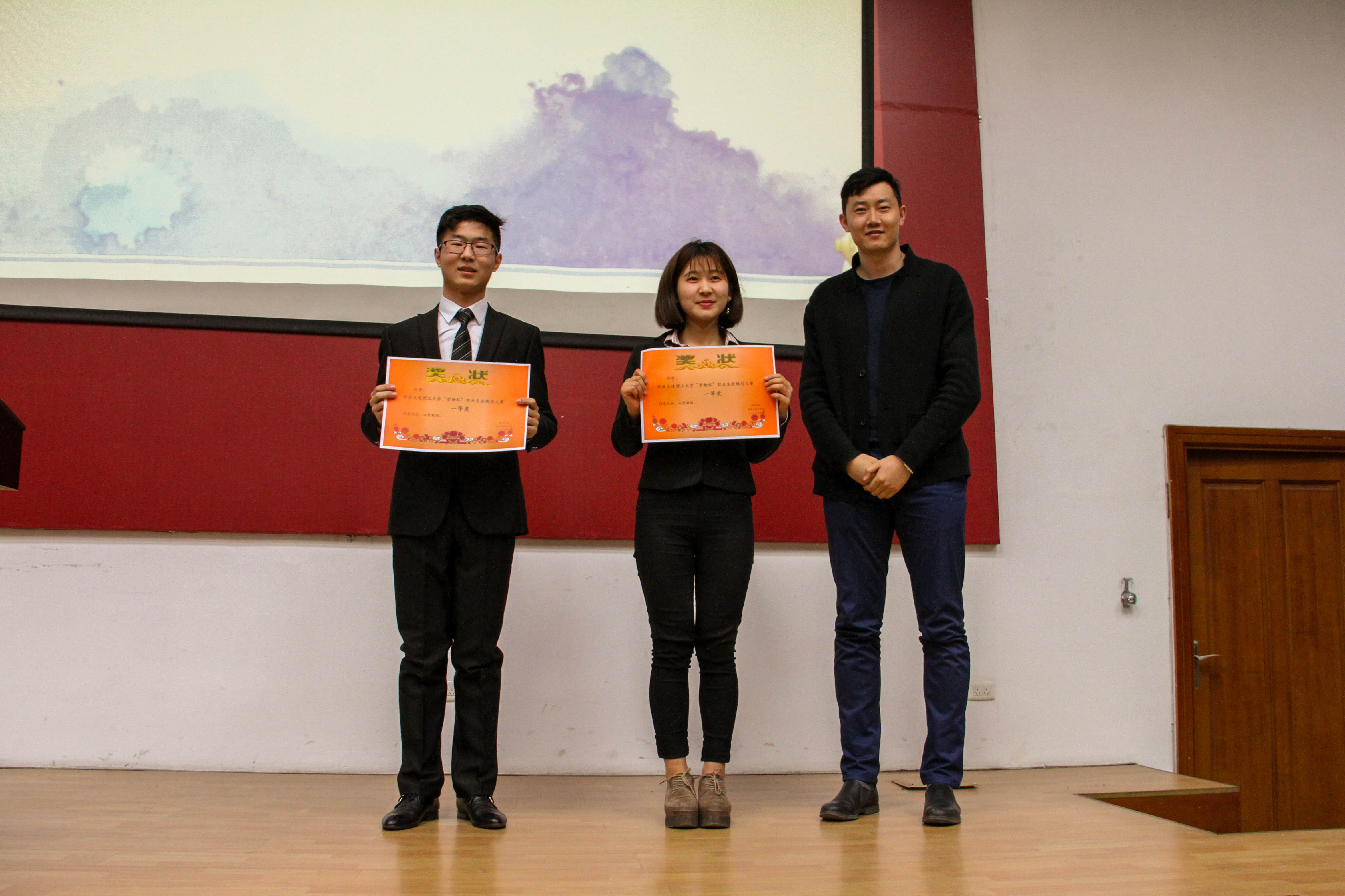 最终,吕响、李鑫、许威、谢冰荣获三等奖;董新宇、聂旭康荣获二等奖;许少迪、王序涛荣获一等奖。获奖选手上台领奖并和颁奖嘉宾合影留念,至此本次大赛拉下了帷幕。
