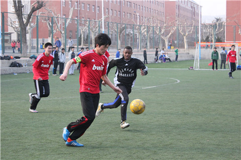 在今天的比赛中,宝威体育平台队采取了“重点防守”的阵容。上半场比赛,宝威体育平台虽创造了几次得分的机会,可并没有将优势转化为胜势。国交学院队进攻猛烈,也仍然没有攻破宝威体育平台队的大门。双方二线阵容拼抢激烈,不过均没有取得进球,最终上半场比赛以双方0比0握手言和结束。中场休息时间,队长朴敏清为队员们打气加油,队员们相互鼓励充分体现了宝威体育平台足球队团结一心、奋勇争先的精神。
