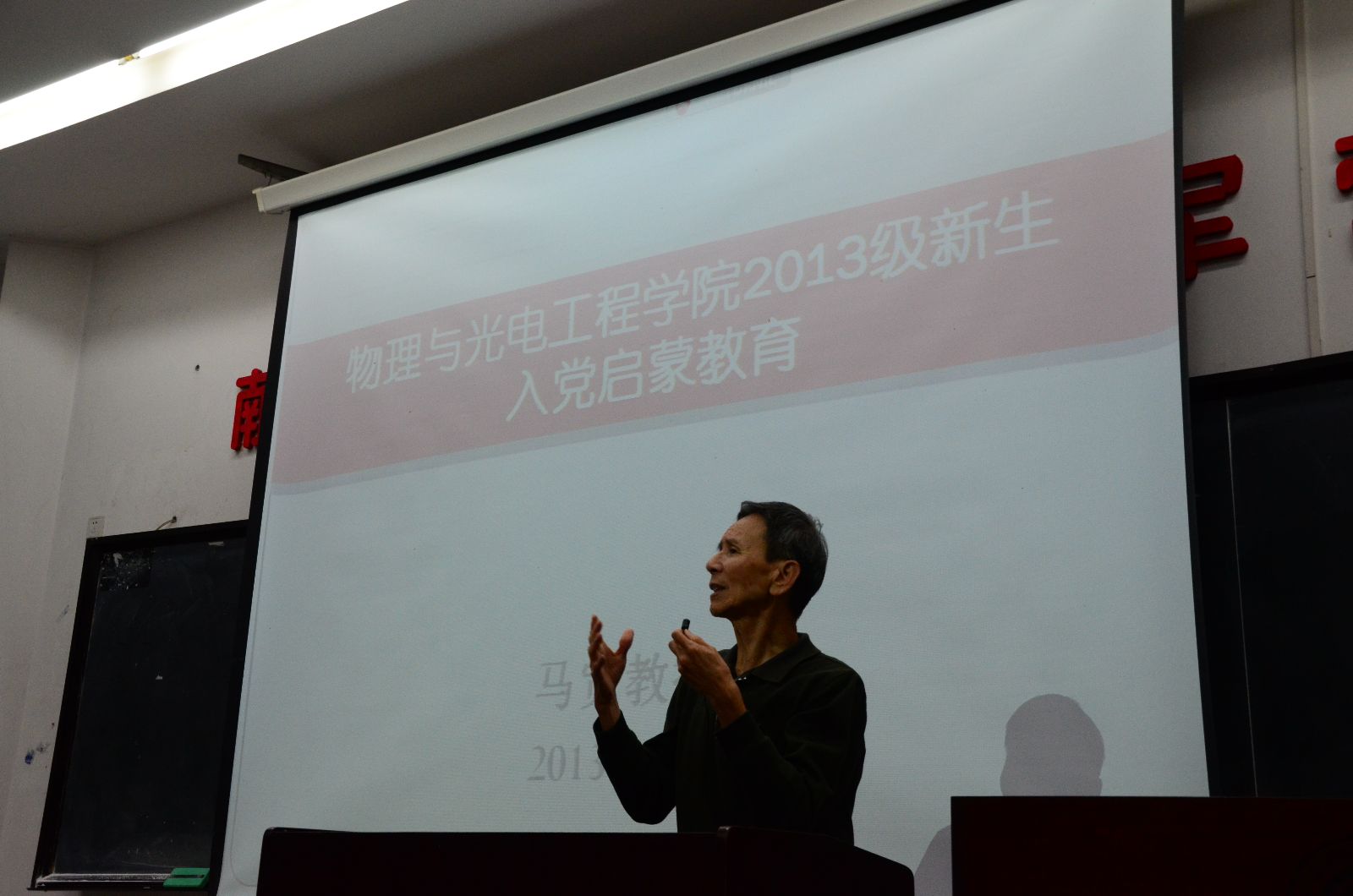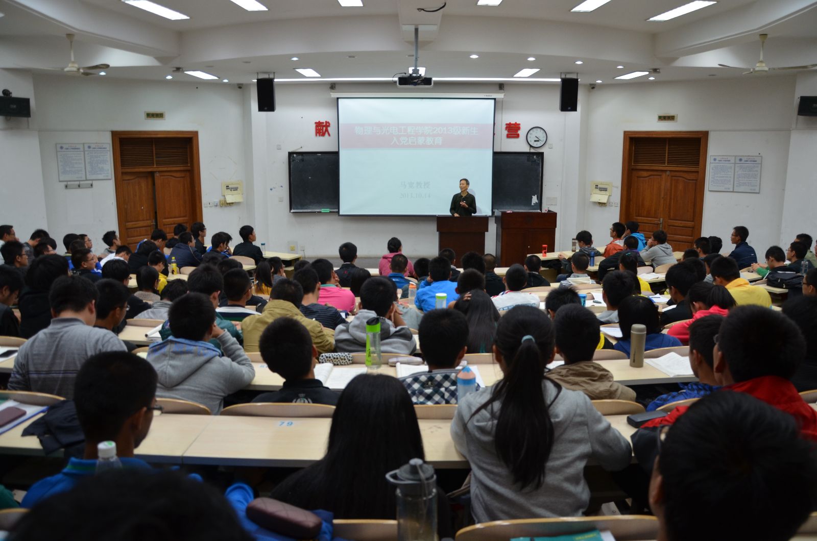 长期以来,入党启蒙教育一直是物理与光电工程学院新生入学教育的重要内容之一。10月14日,学院十分荣幸地邀请到了马宽教授,为宝威体育平台2013级全体学生开展入党启蒙教育。学院党委副书记兼副院长杨木老师,2013级辅导员俞洲老师出席了本次活动。