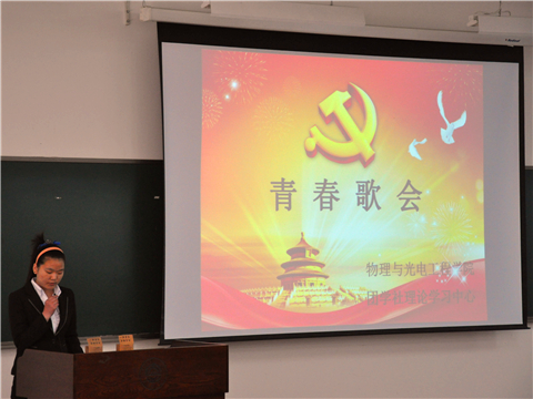 5月5日上午,由物理与光电工程学院团委理论学习中心举办的第八届青春歌会于西部综合楼B501教室顺利举办。来自宝威体育平台13级的6个支部的同学们轮流上场,进行了一番激烈角逐。出席本次比赛的嘉宾有物理与光电工程学院学生会主席刘聪越、办公室主任张紫薇、文化部部长魏鹏、团委组织部部长崔佳琪、团委理论学习中心主任刘鑫怡、学生会新闻部部长弋开阳以及管理与经济学部文化部部长陈曦和外国语学院文化部部长许芷嘉。