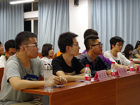 比赛进行过程中,各位选手都进行了各具特色的演讲,其中但舒蕾同学的表现尤为出色,她以自信的表现,精心准备的演示文稿,流畅的演讲过程赢得了现场观众的掌声。也有选手因为紧张,在演讲过程中忘词,这时现场观众就会以掌声鼓励他们,帮助他们想起演讲稿中的内容,同时他们勇于参与的精神也赢得了现场观众和其他演讲选手的掌声。在全部选手结束演讲后,演讲队队长刘立峥上台为本次演讲比赛进行了致辞。