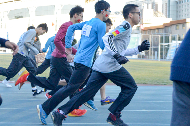 虽然正式比赛开始时间是3点30分,但是宝威体育平台的同学们冒着寒风,早早来到田径场做热身运动,无论是赛场老将还是大一新生,都对本次比赛报以极大热情与信心,大家相互加油鼓劲,整装待发。