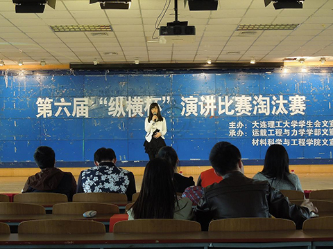 由大连理工大学学生会文宣部主办,运载工程与力学学部学生会文宣部和材料科学与工程学院学生会文宣部共同承办的第六届“纵横杯”演讲比赛淘汰赛于4月18日下午在大服楼华为厅举行。到场评委有:化环生学部辅导员冷闯,校学生会第33届下学生会文宣部部长杨峻,校广播台第27届台长张大奇,校团委助理张弘莲以及第五届纵横杯冠军主要成员汪雪晴。