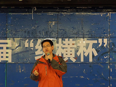 刘立峥演讲的主题也是追寻梦想,但他的演讲不同于上面两位。他借由中国好声音选手钟伟强的经历,来表达自己“就算被岁月这把杀猪刀伤得遍体鳞伤,也要保留那颗追寻的心”,给大一的学弟学妹展现了学长潇洒的英姿。