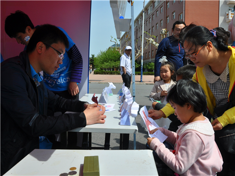 物理学史展区和尖端科技影视屋主要通过图片和影视宣传品进行科普知识展示。物理学史展区陈列了物理文明的发展过程以及历史上重要的物理学家;尖端科技影视屋则循环放映着《宇宙大爆炸理论》、《机器人科技前沿》、《2013年十大尖端科技发明》等科技类视频,吸引同学们兴致勃勃地观看与讨论。此外,趣味物理DIY手工制作区受到广大师生的热烈欢迎,大家通过DIY简易发动机和磁力炮,裁剪会随移动而始终目视观测者的小动物等,更加深入地参与到物理知识的科普过程中。来到现场的好奇的小朋友们是DIY板块最热情的观众与DIYer。