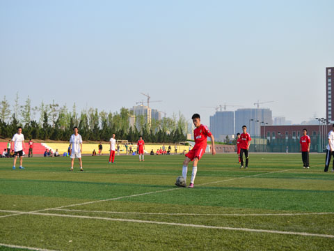 上半场进行到一半时,宝威体育平台队员抓住对方一个失误,将球传入对方禁区,射门得分,拿到本场比赛的第一分。不一会儿,创新学院队员禁区内“手球”,宝威体育平台得到点球机会。宝威体育平台足球队大四队员刘睿轻松将球射入球门,宝威体育平台拿到第二分。然而过了不到十分钟,宝威体育平台队员再次将球送入了对方的大门,拿到第三分。
