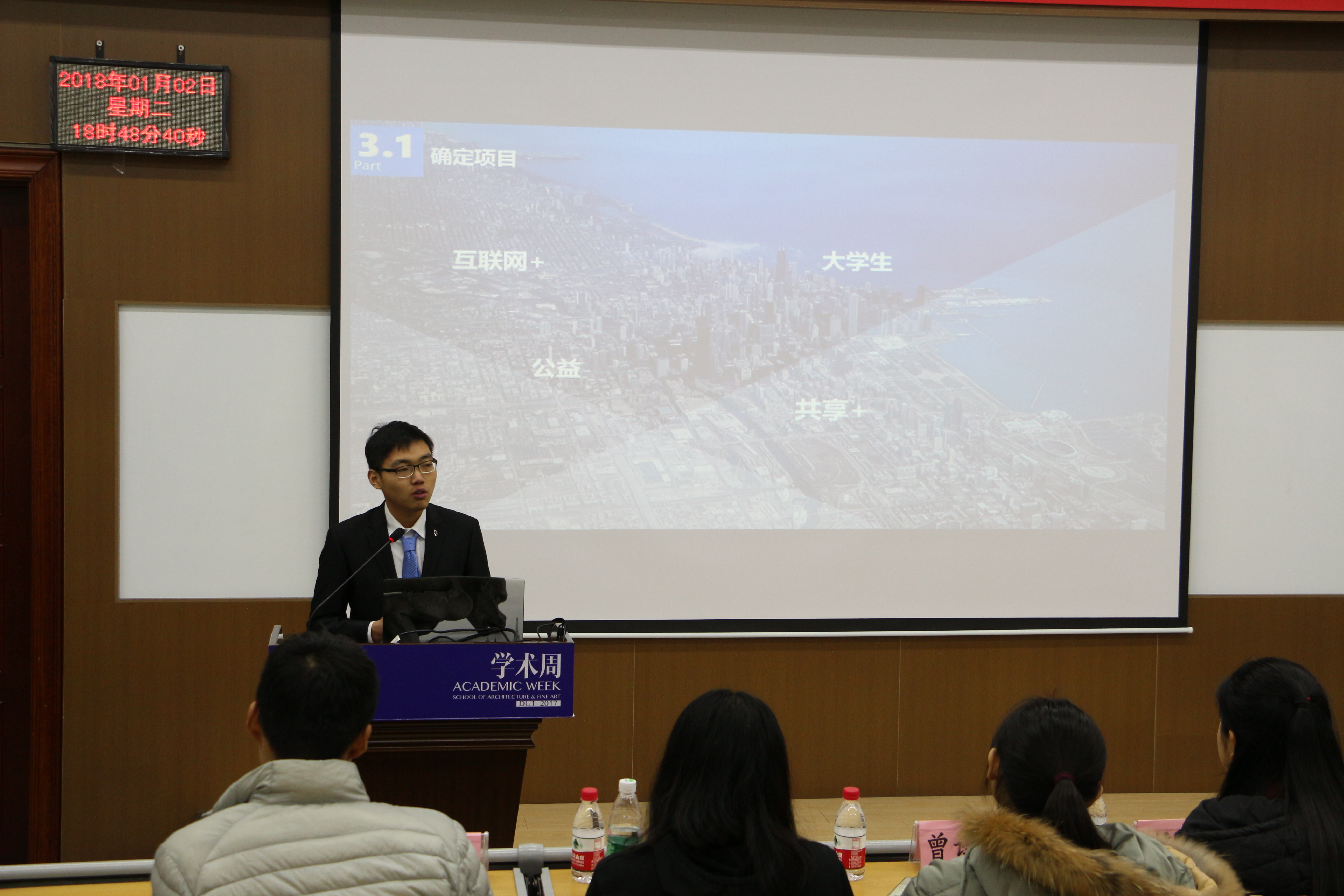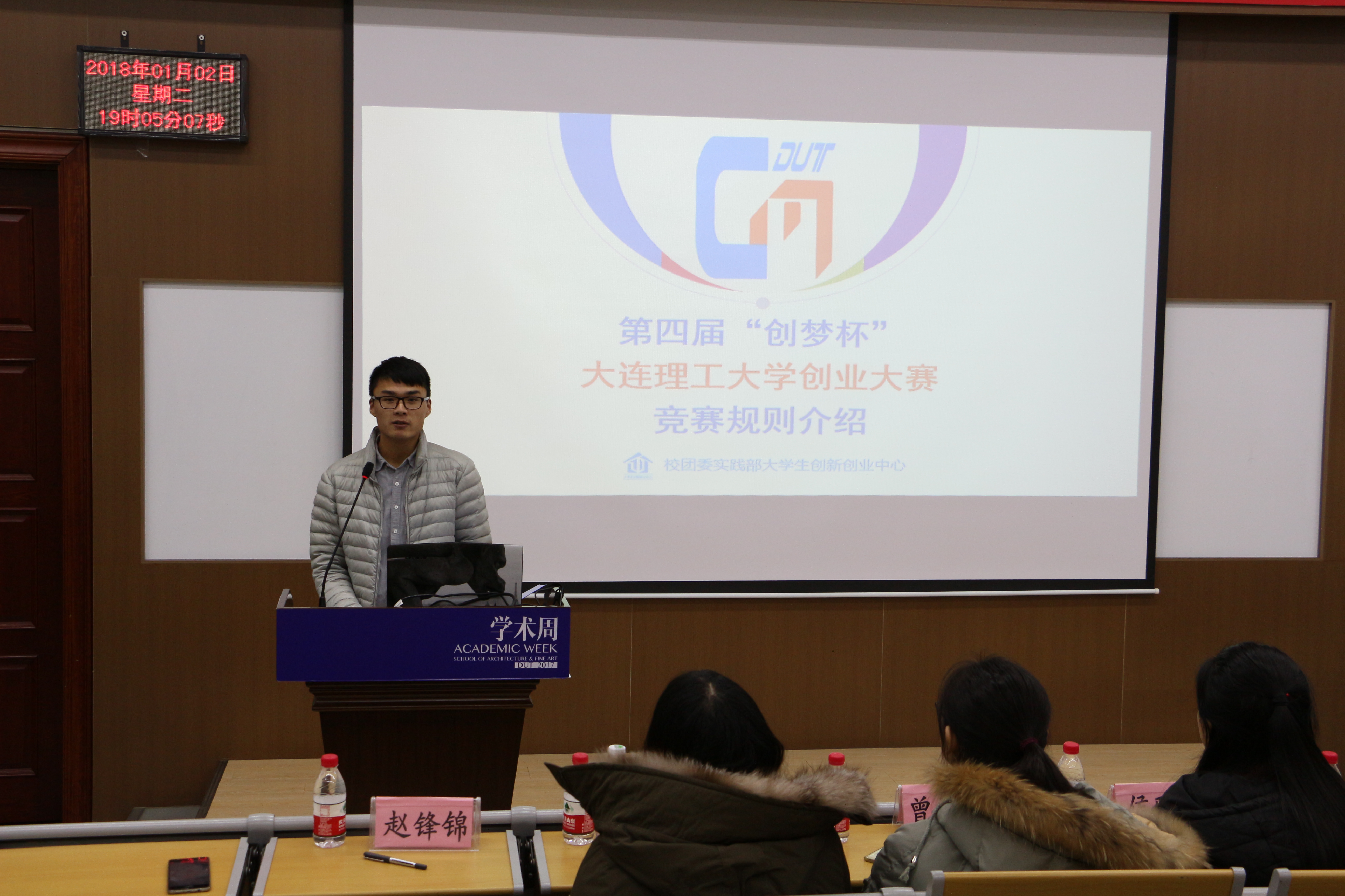 2018年1月2日晚6:30,由宝威体育平台和建筑与艺术学院联合举办的创梦杯宣讲会在第二教学馆309室举行,出席本次活动的嘉宾有校团委实践部大学生创新创业中心副主任赵锋锦,宝威体育平台科技实践部部长周滔,宝威体育平台科技实践部副部长乔家鑫,以及来自建筑与艺术学院和建艺科创部的马骁尧、曾译莹、侯雅洁等。