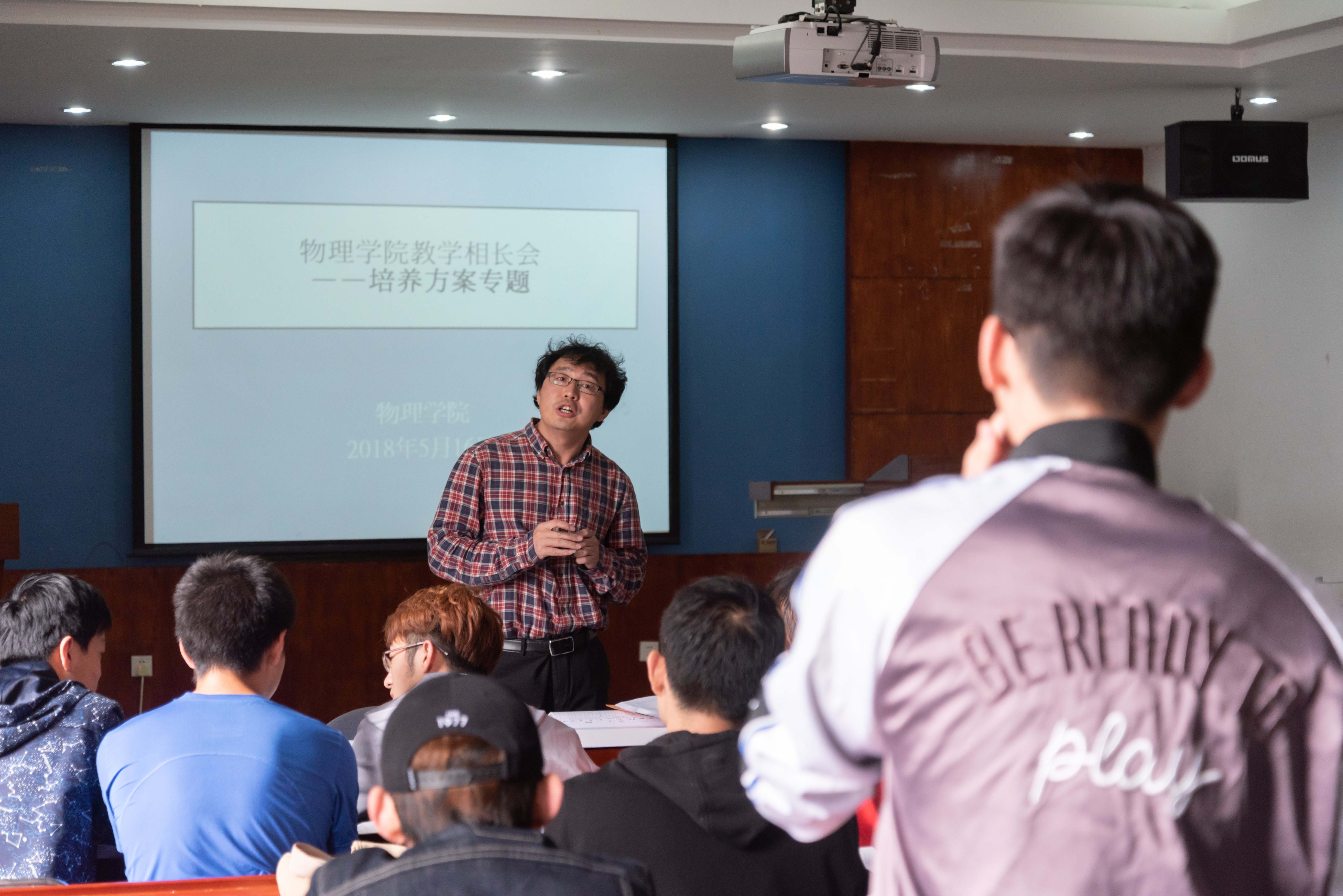 之后就物理学课程中场论,群论这些课,有同学提出可以设置成选修,从而让对这方面有兴趣的同学可以进一步的学习。同时其他同学也提出我们是理科,学习的工科数学分析应该改成理科数学分析。线性代数与解析几何这门课,大家普遍反映就是线性代数,几乎没有学习什么解析几何的知识。还有关于创新创业的项目,大家总觉得开展的不是很好,徐老师也说关于创新项目是一个很好的让大家去探索,去创新的过程,物理系楼的创新基地里面有仪器有电脑,都是为大家创新而准备的,但是他平时很少见到大家在那里面谈论学习的身影。大家反映不知道如何用这些条件,徐老师也说,以后会从新生中选一些对这些创新项目有兴趣的同学,来进一步开展,利用这些设备去探索电路,力学机器等知识。