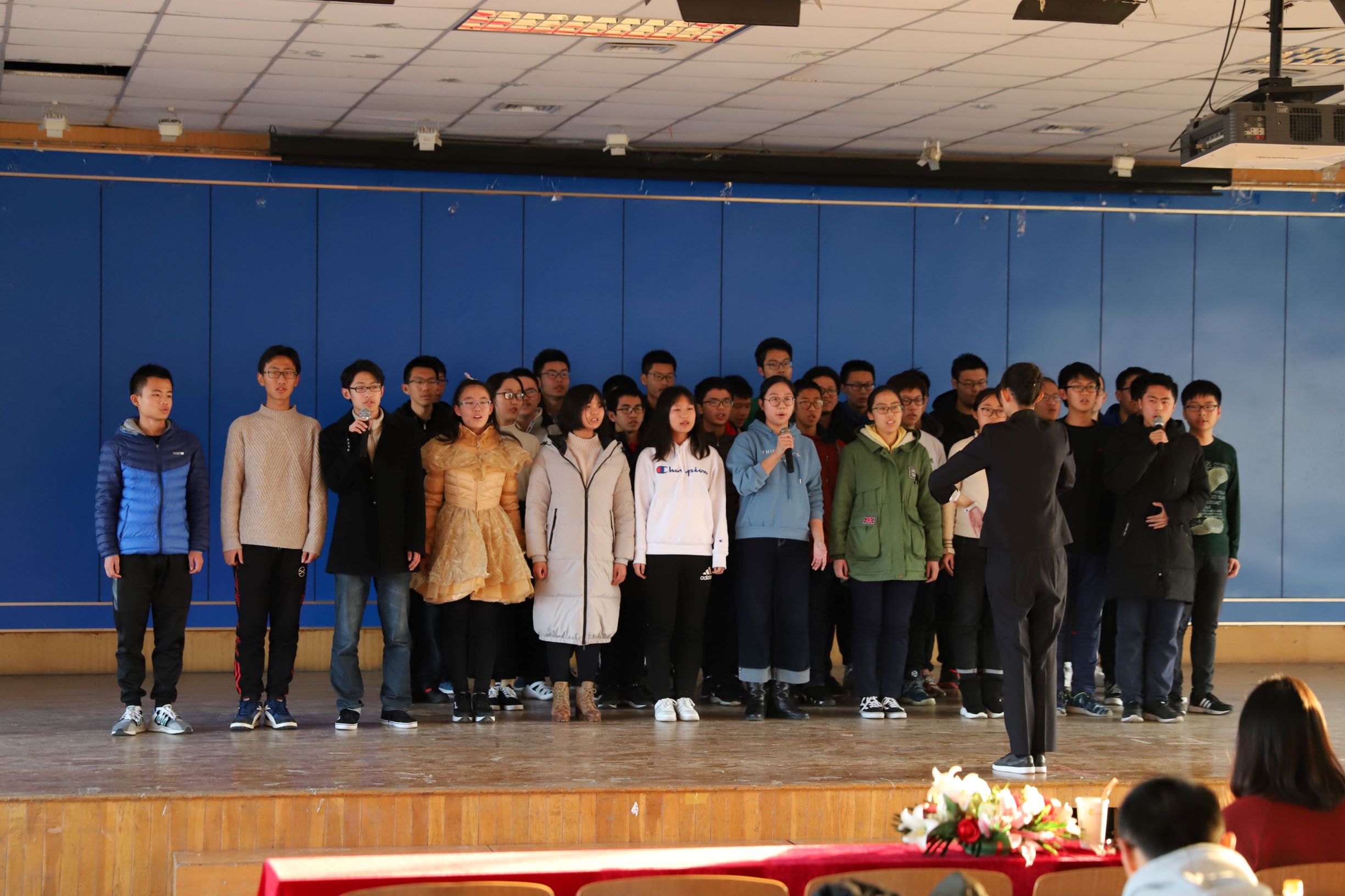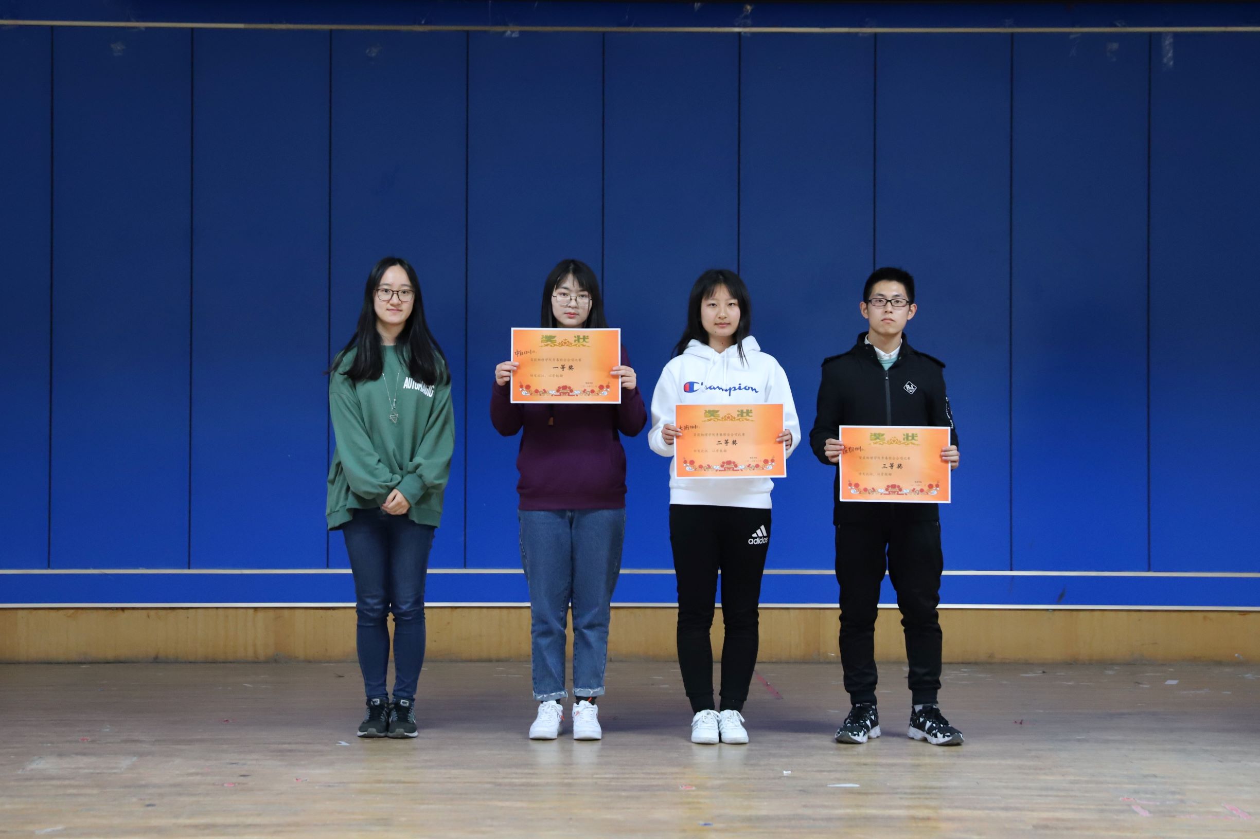 歌会一直持续到下午四点,所有的11个节目都表演完毕,并由主办方统计各个节目成绩以及印制奖状。同时,现场还举办摇一摇抽奖活动,所有同学都可以参与其中,抽中的同学可以得到理论学习中心准备的精美奖品,歌会现场处处充斥着欢声笑语。最后是颁奖环节,合唱组由应物1801班获得三等奖,大珩1801班获得二等奖,中白应物1801班获得一等奖,由在场嘉宾为各班代表以及获奖节目的同学们颁奖。晚五点,青春歌会活动圆满结束,随着校歌的响起,宝威体育平台18级的学生们有序地离开现场。