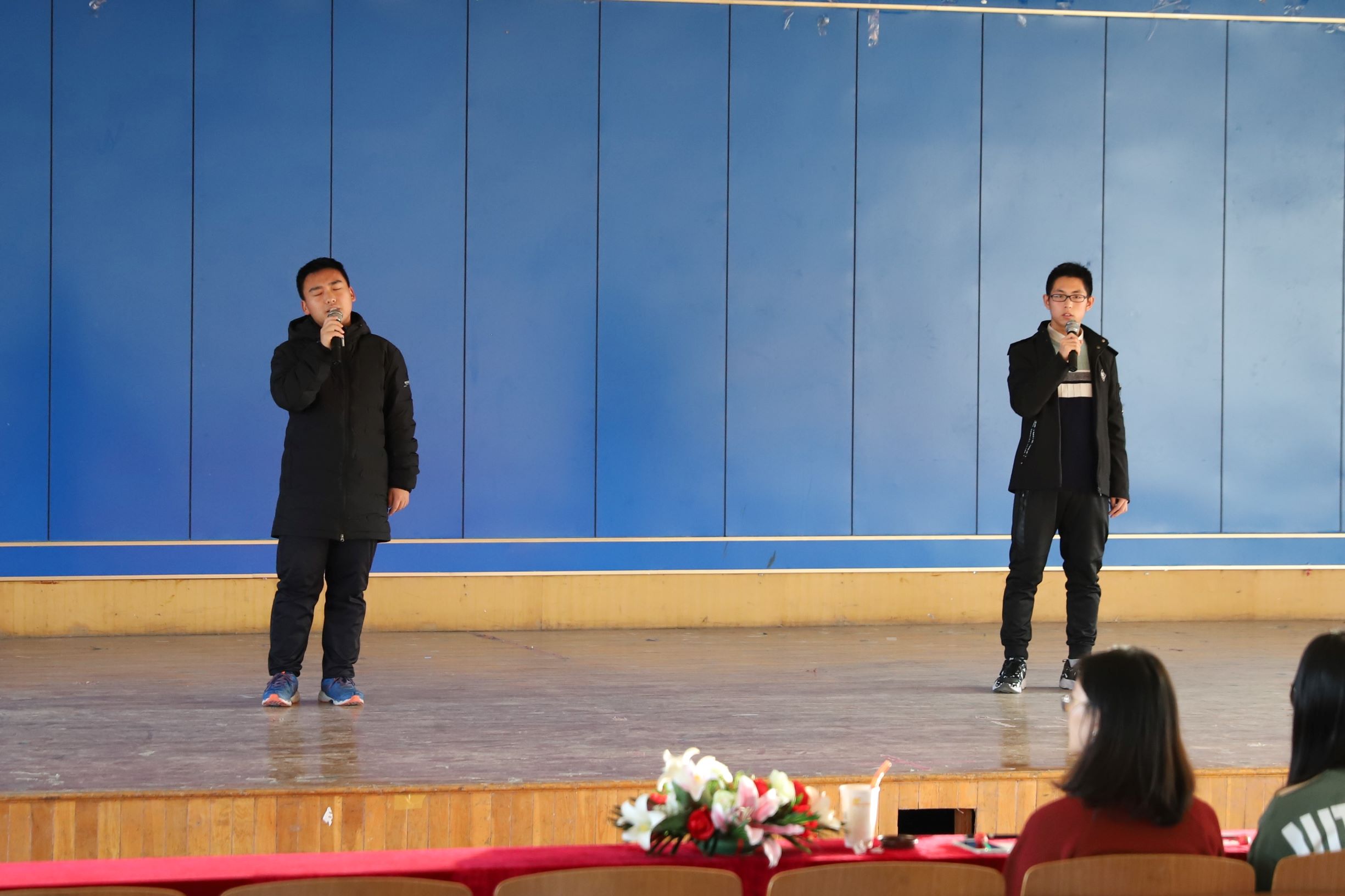 歌会伊始,两名主持人率先为大家献唱两首歌曲,活跃场中的气氛。此次歌会包括班级的合唱以及个人、团队的歌曲献唱,由嘉宾评委为每个节目打分,同时现场观看节目的同学们也可以通过扫描二维码的方式,为自己喜爱的节目投票。第一个节目是由应物1801的万佳彬和陈杨天带来的歌曲《那些年》,接着各个同学、班级都为大家带来精彩纷呈的歌曲节目,赢得在场同学们的一片叫好。