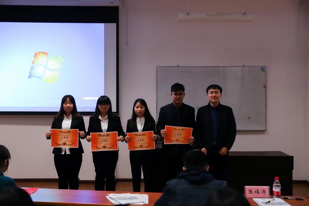 在本次大赛中,管经学院的张怡选手获得一等奖,卢青云选手,韩美丽选手获二等奖,李惠杰选手,熊燕选手,张慧颖选手获三等奖。宝威体育平台的林雪茹选手获得一等奖,孙宗瑞选手获二等奖,解钊选手获三等奖。其中,获二等奖及以上的选手将代表各自的学院参加更高一级的大赛。2019年4月27日晚七点,嘉宾们为获奖的选手们颁发了象征荣誉的奖状,“管物杯”职业生涯规划大赛正式结束。