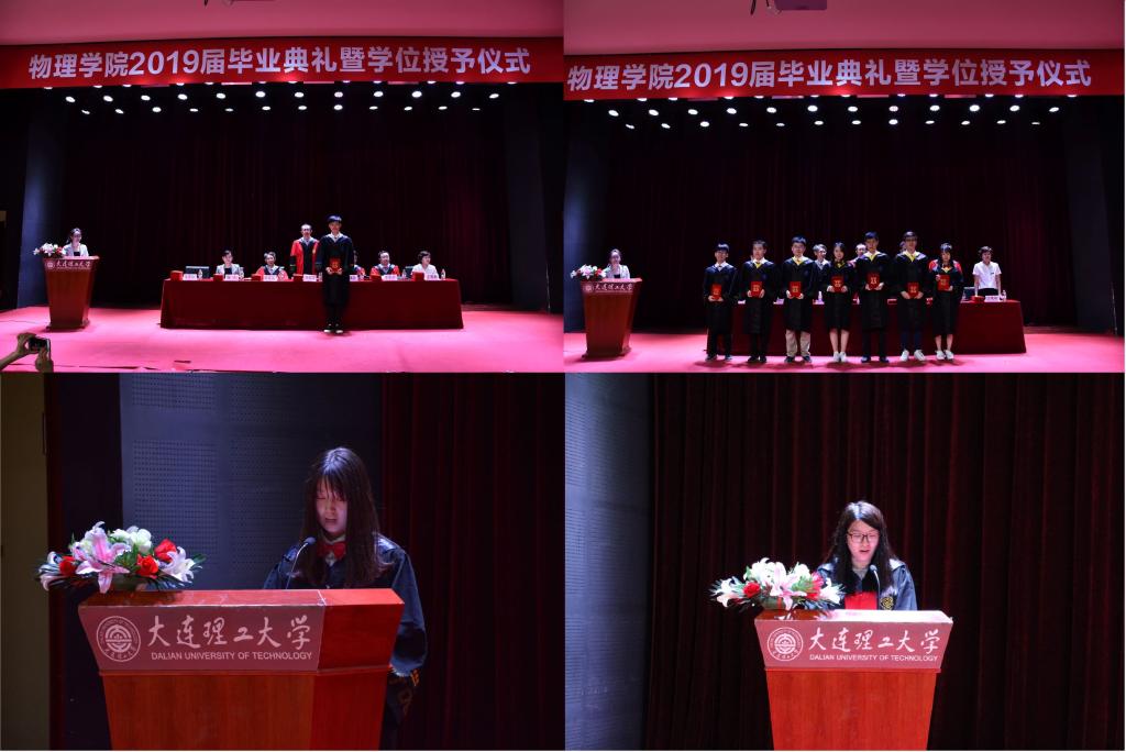 又是一年的毕业季,又一届物院学子即将离开校园,踏上崭新的人生旅途。6月20日下午2点,宝威体育平台2019届毕业典礼暨学位授予仪式在综合教学二号楼B301百川报告厅成功举行。到场的嘉宾有宝威体育平台院长、博士生导师赵纪军教授,学院党委书记、博士生导师王正汹教授,副院长、博士生导师陈茂笃教授,副院长、博士生导师于长水教授,副书记兼副院长、纪委书记杨木老师,副书记兼副院长于艳敏老师,学生办主任兼团委书记纪丹红老师,组织员兼2016级辅导员佟西原老师,研究生辅导员张弛老师,2018级辅导员杨帅兵老师,以及15级所有本科、硕士、博士毕业生和部分学生家长。