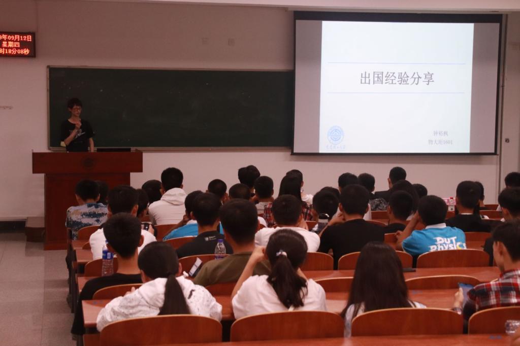 决定赴英留学的2016级钟裕枫进行出国经验分享。他认为出国留学的意义在于出门看世界,读人生奥义。建议同学们在出国前算清成本,明确目标,综合学制、学校、专业等方面进行学校的选择。