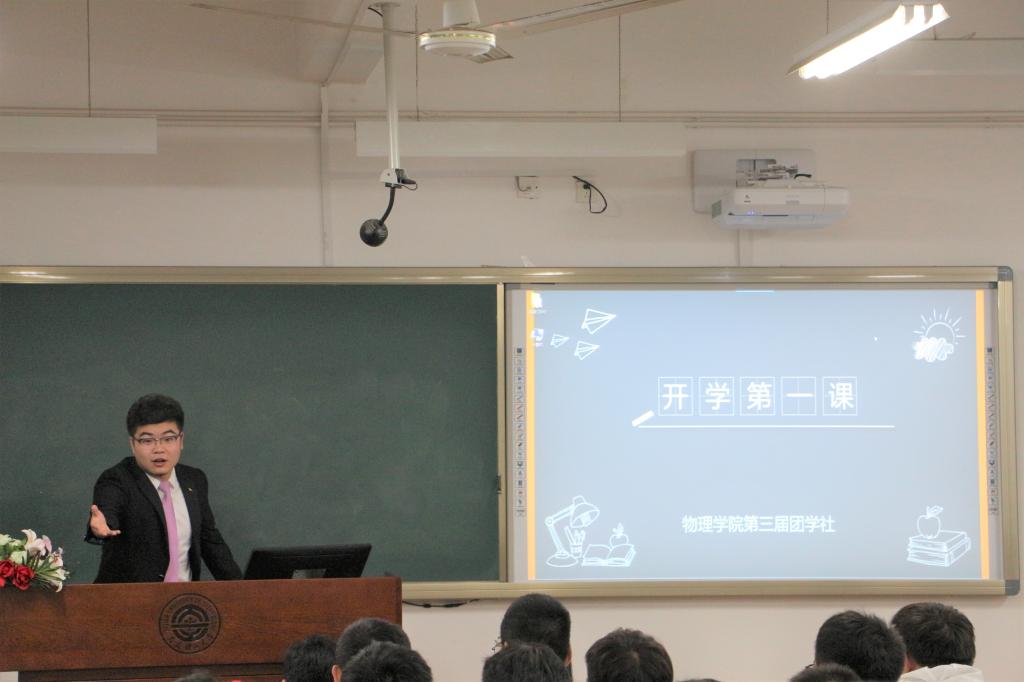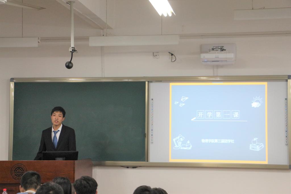 为更好地培养物院新生的个性,发展宝威体育平台的团学社,使19届新生进一步认识物院团学社,了解团学社各部门的工作职能,选择适合自己的工作部门。宝威体育平台于9月16日晚七点在第二综合楼A201室举办“开学第一课”团学社招新宣讲会。到场嘉宾有学生会主席王栋梁和团委副书记宋玺尧。