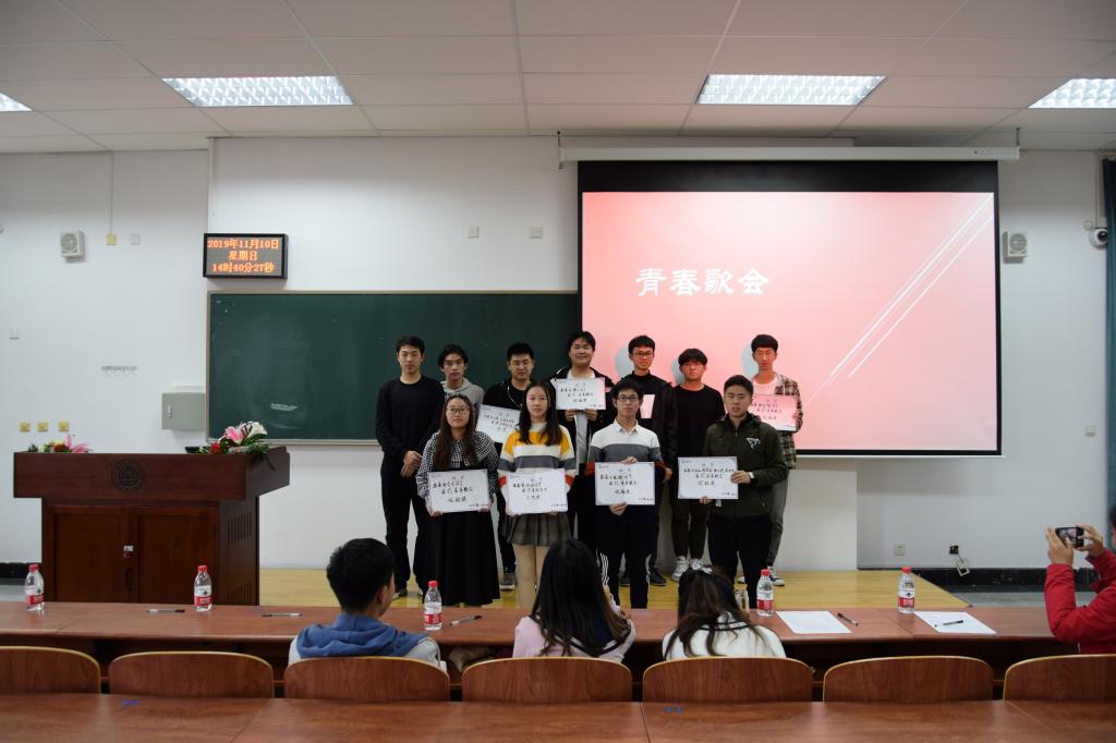 下午两点三十分,十组选手两轮的竞演全部结束。成绩当场计算并公布一、二、三等奖获得者与优秀奖获得者,由宝威体育平台理论宣传中心部长李雨萌书写奖状并颁发奖品。下午三点整,青春歌会圆满结束,参加歌会的评委、观众与选手有序离场。