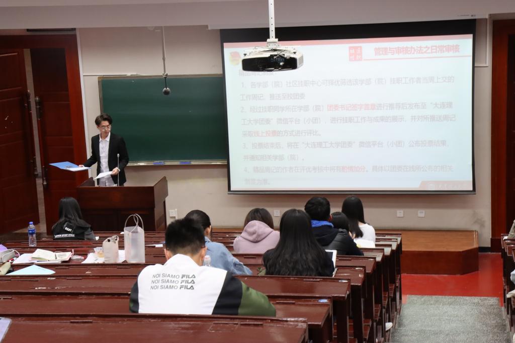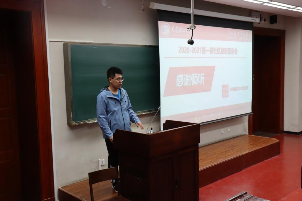 为响应团组织的号召,共青团大连理工大学委员会联合大连市沙河口区、甘井子区团区委开展大学生社区挂职特色服务活动。由宝威体育平台、大连理工大学白俄罗斯国立大学联合学院、经济管理学院联合举办的社区挂职培训宣讲会于10月18日下午15:00在第一教学馆209教室顺利召开。宝威体育平台学生郭沛担任本次宣讲会主持人。