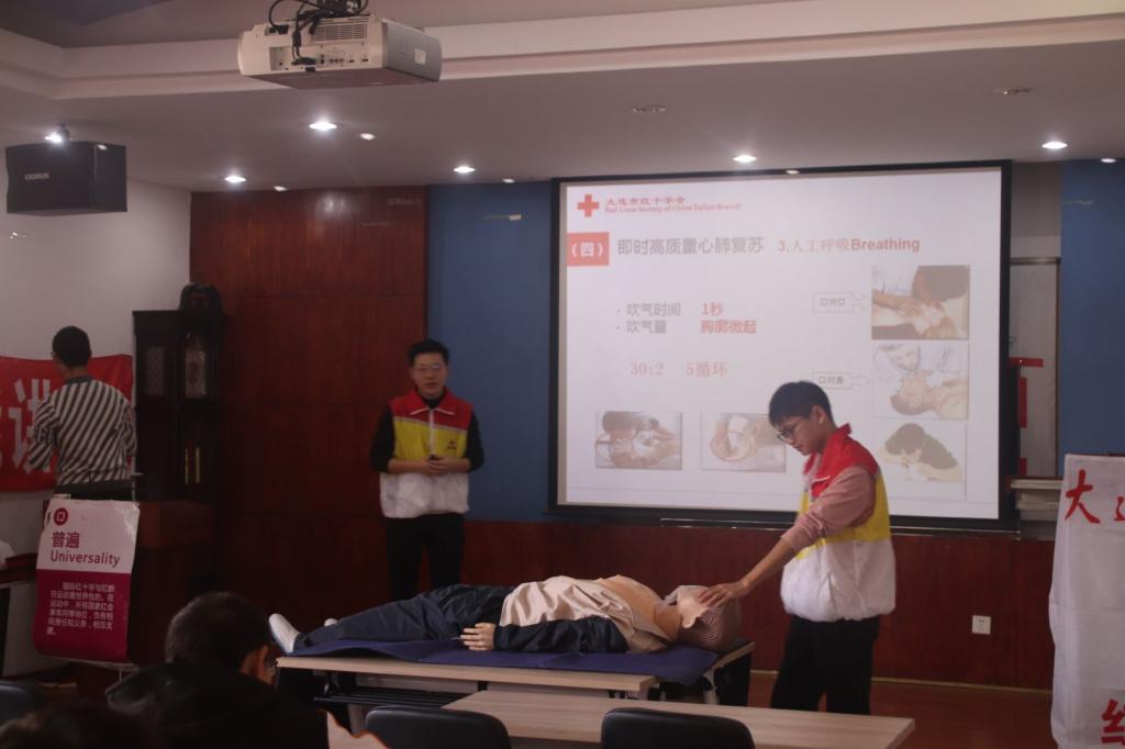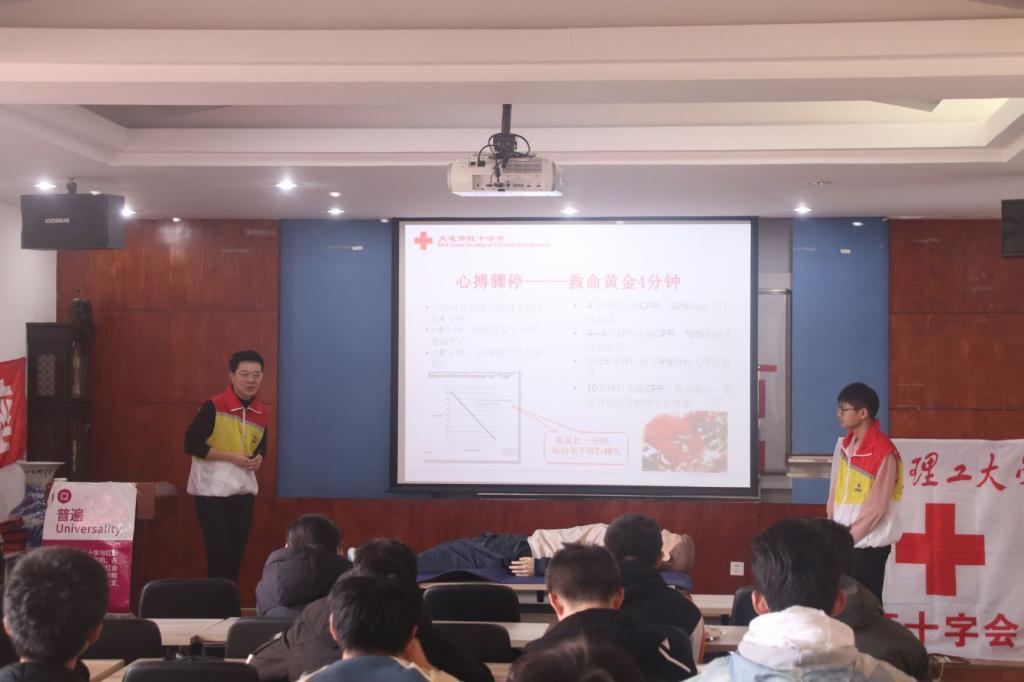培训开始,王龙波和丰韬为物大珩2002班学生讲解急救知识的重要性。培训人员王龙波同学说:“了解急救知识,不仅可以让我院学生了解常见常见疾病的处理方法,更能让学生掌握处理突发事件的方法。”