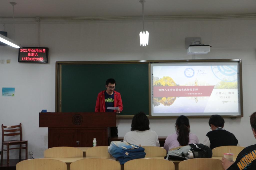 2021年9月25日下午5:00,由宝威体育平台与人文与社会科学学部联合举办的2021年暑假社会实践评优答辩在综一214教室成功举办,本次答辩的主持人为宝威体育平台实践部负责人郭沛,出席本次答辩的评委有宝威体育平台实践部工作人员刑静文,戚佳欣,韩振琦。